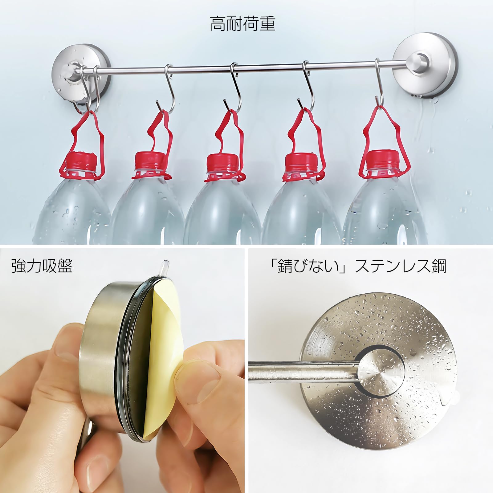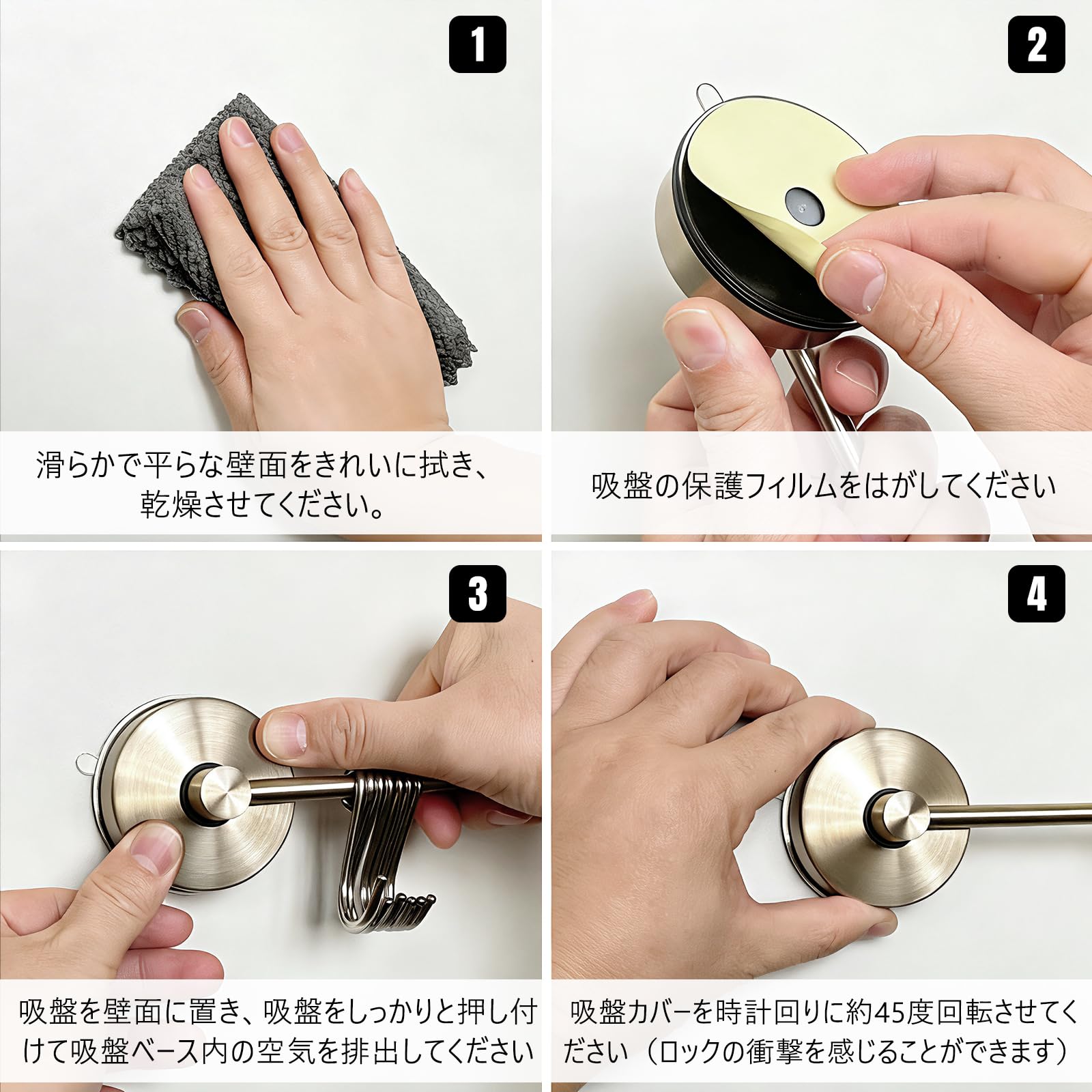 キッチンツールフック、超強力吸盤、ステンレススチール、移動できるフック7個付き、バスルーム&キッチン収納