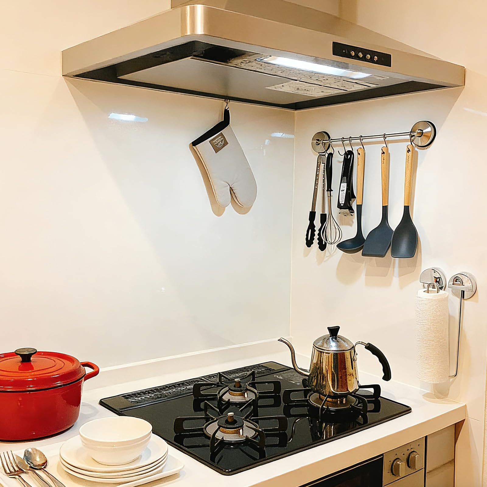 YipuVR キッチンツールフック 壁掛け 強力吸盤 台所 収納 キッチン収納 防水防錆 高耐荷重 取り外し可能 鍋蓋置き 壁を傷つけず穴あけ不要 ダブルバー 6個可動式フック 30cm 金属 アルミニウム (ミルクホワイト)