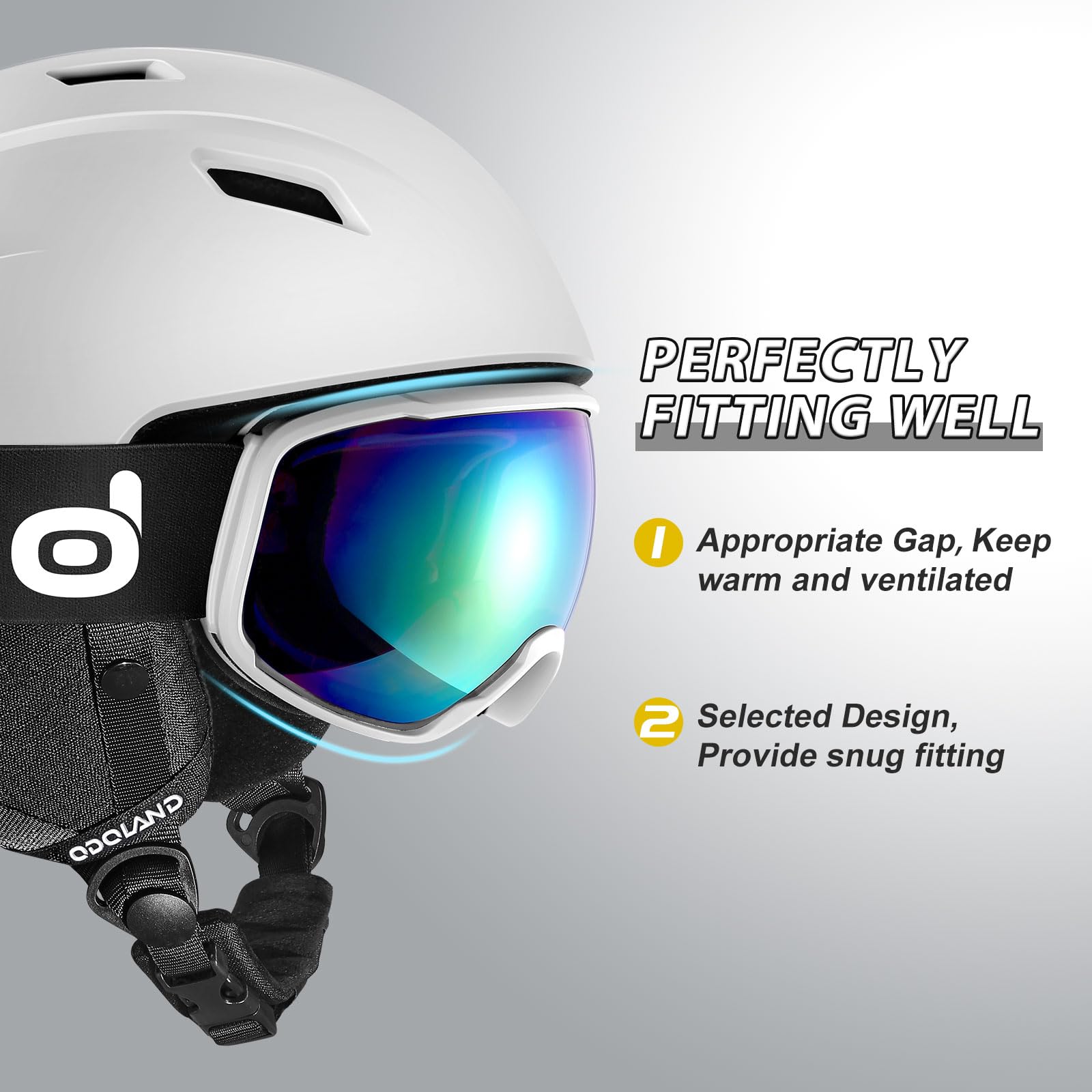 Odoland スキーヘルメットセット ゴーグル付き スノーボードヘルメット ダイヤル式サイズ調整 メガネ対応 ダブル球面レンズ 防風 曇り止め 耐衝撃 UVカット 男女兼用 大人・ジュニア・子供用