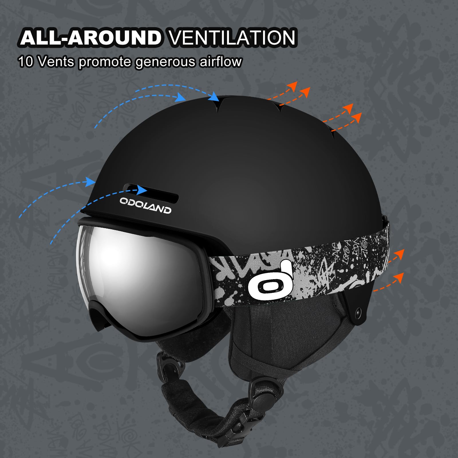 Odoland スキーヘルメット 開閉式ベンチレーション スノーボードヘルメット 安全認証済み ダイヤル式サイズ調整 ゴーグル固定バンド付き ファッション 男女兼用 大人・ジュニア・子供用