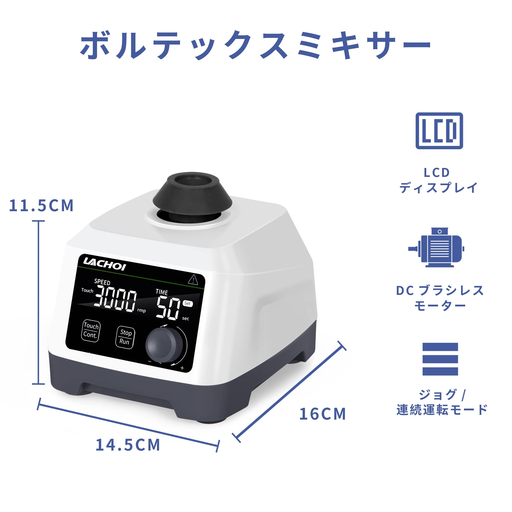 LACHOI ボルテックスミキサー 100-3000RPM 遠沈管/試験管ミキサー タイミング LCDディスプレイ 4.5mmサークル直径 ラボミキサー 液体ボルテックスミキサー 試験室/研究室/学校教室/美容院/マニキュア店用 ボルテックスミキサー 画家用 タッチミキサー