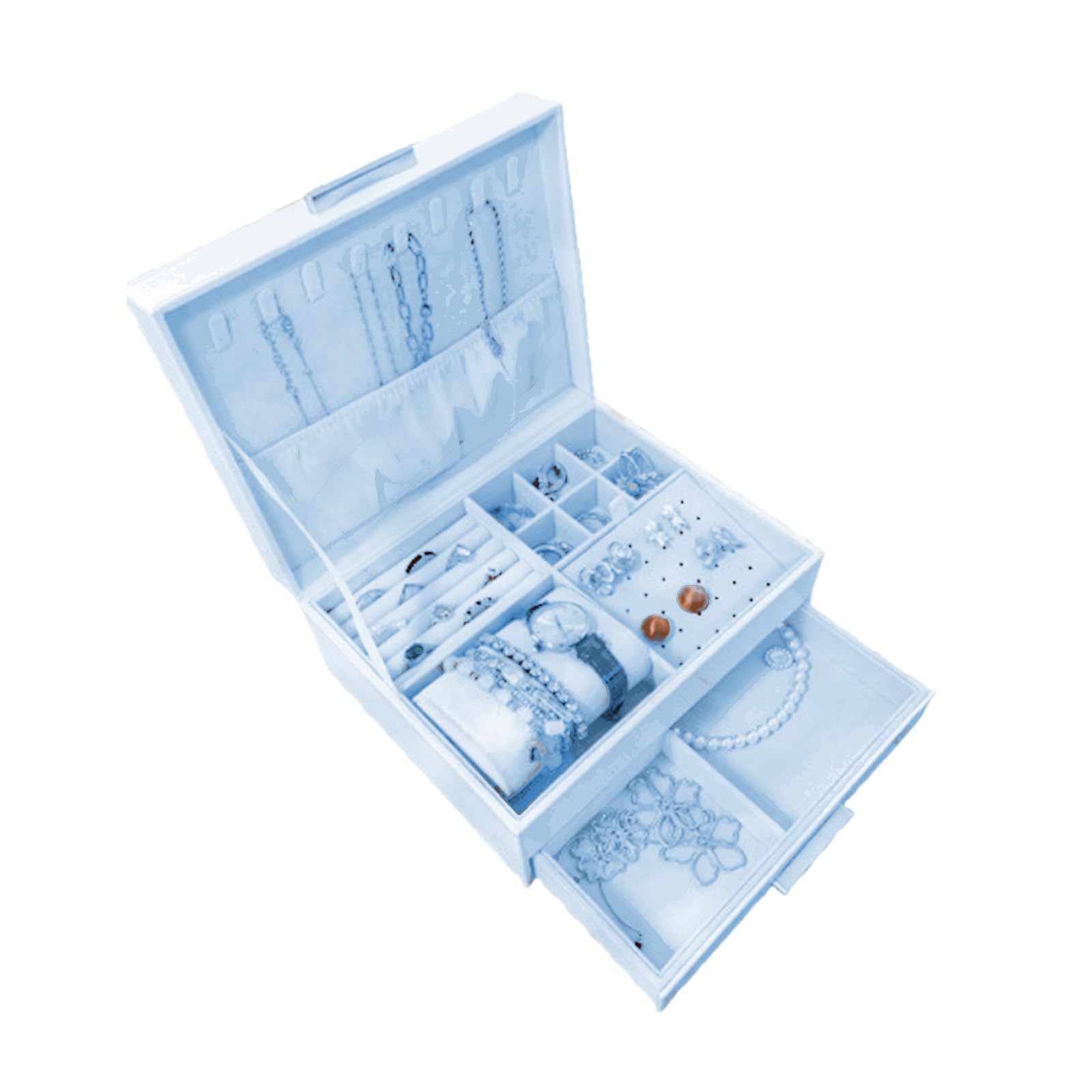 Lolalet ジュエリーボックス アクセサリーケース 引き出し ピアス収納 蓋 防塵 大容量 ディスプレイ 指輪置き 女性用 プレゼント -ブルー