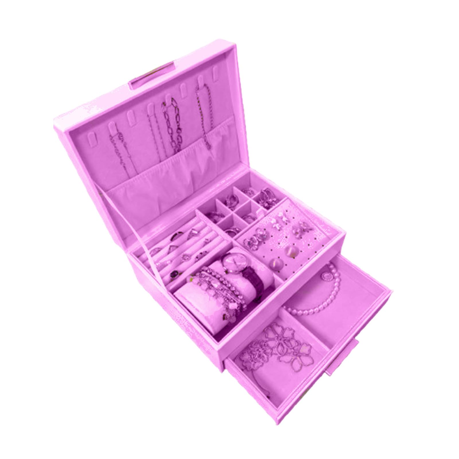 Lolalet ジュエリーボックス アクセサリーケース 引き出し ピアス収納 蓋 防塵 大容量 ディスプレイ 指輪置き 女性用 プレゼント -ピンク