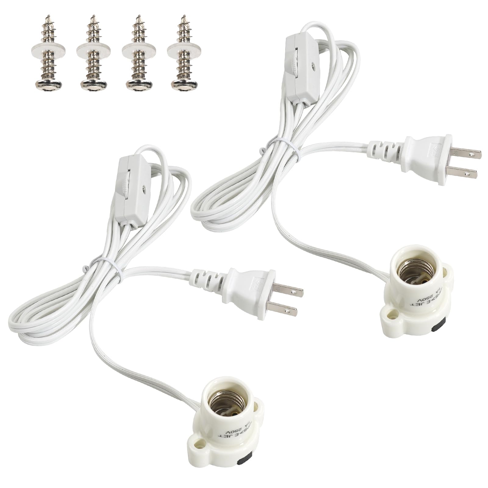 Pispoer|電球ソケット|E26口金|コード付き ソケットコンセント |スイッチ付1.5M|E26用 ソケット付きコンセント|おしゃれ|簡単取付 工事不要|PSE認証|ホワイト|2個セット