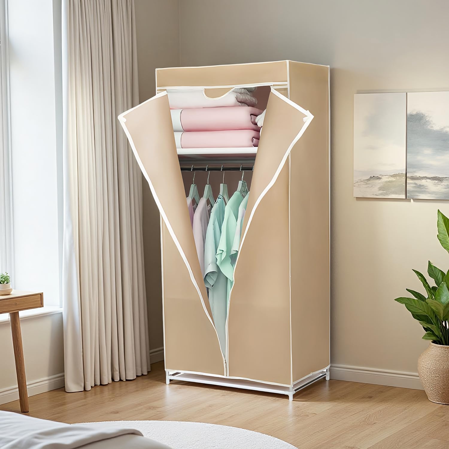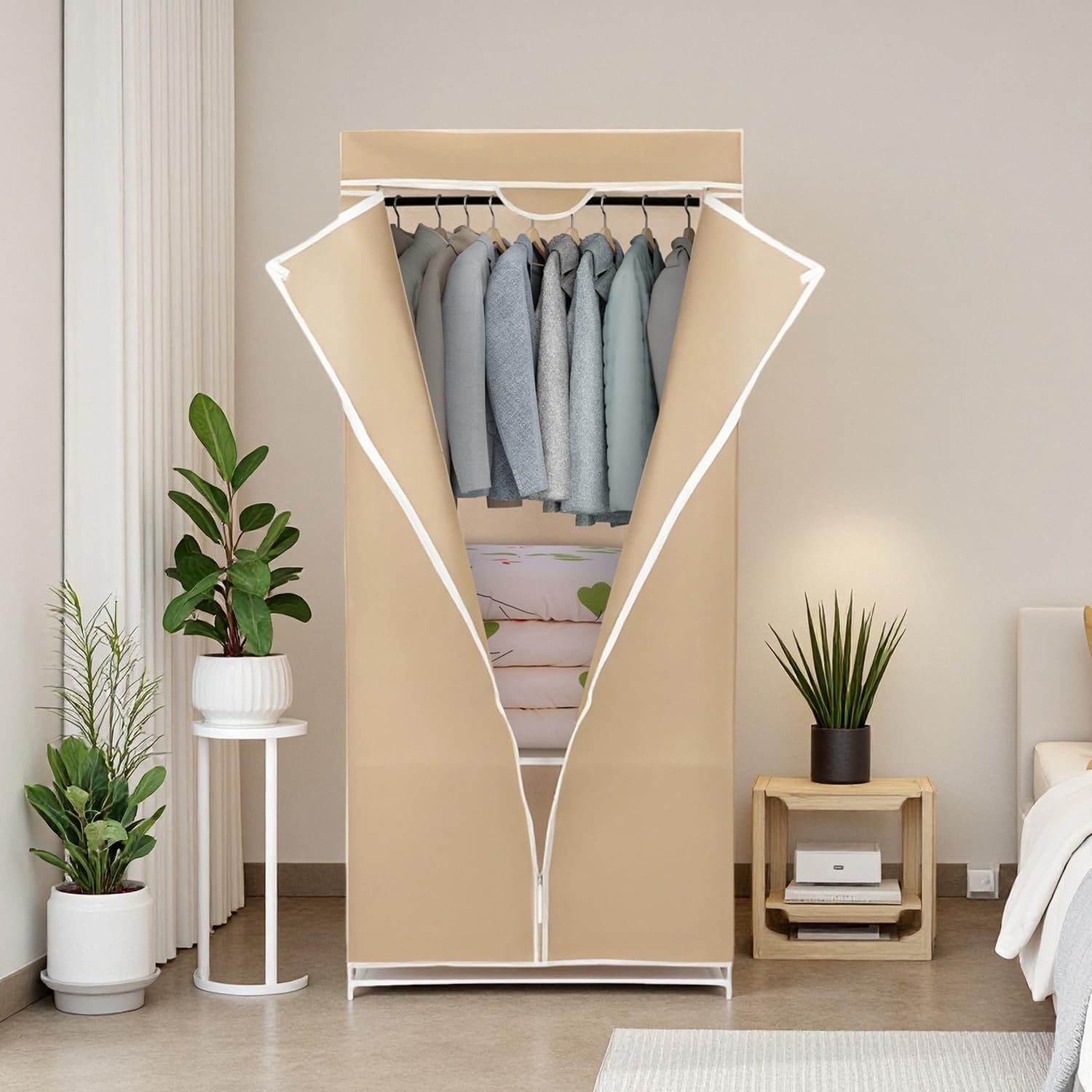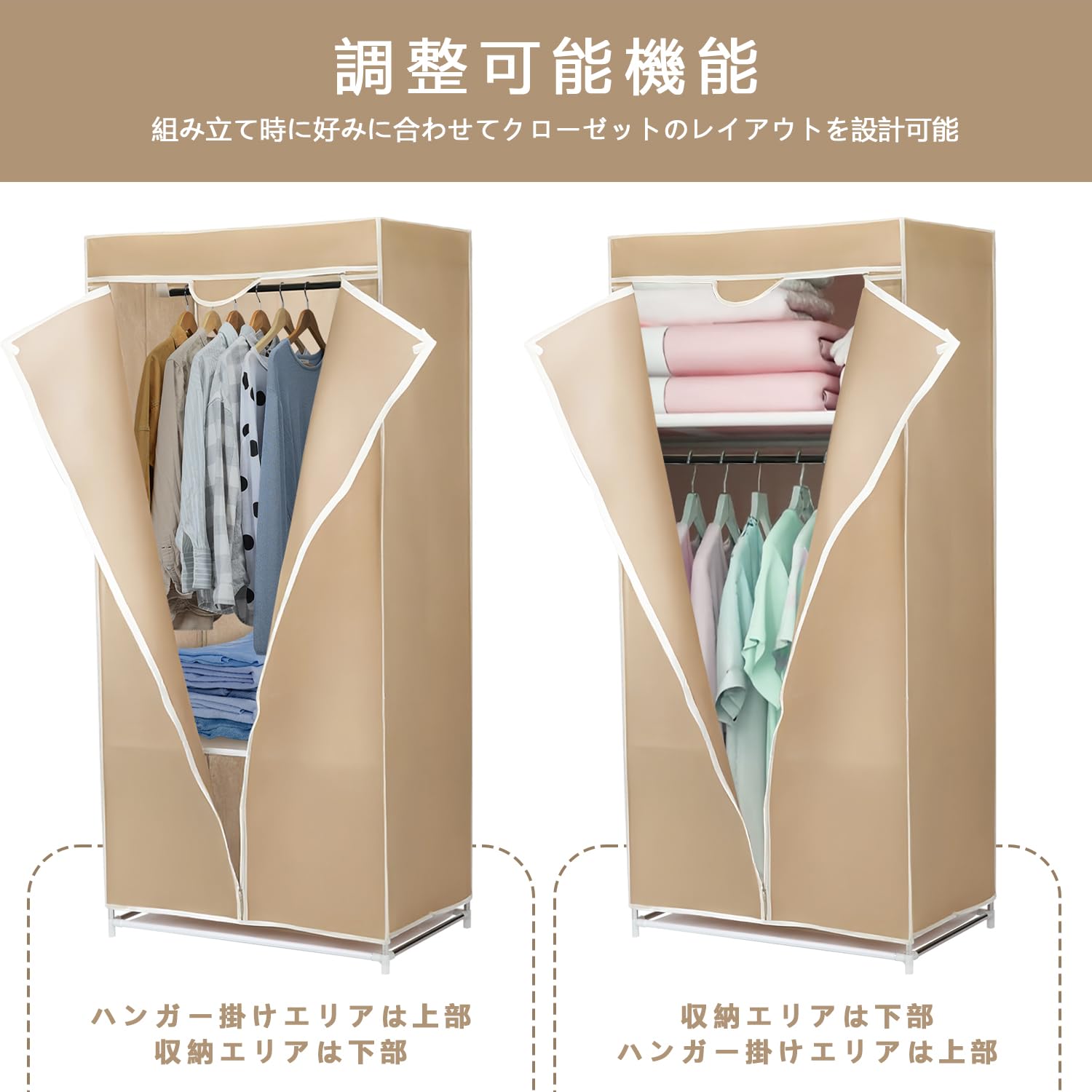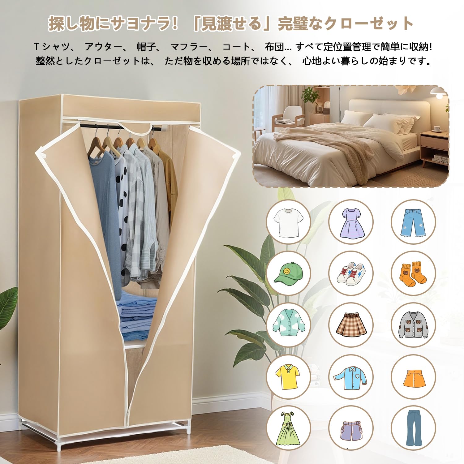 Aikenn ワードローブ ハンガーラック 衣類収納ボックスクローゼット 防塵 高耐荷重 大容量 防水 扉付き衣類ケース 多用途 耐久性 リビングルーム 寝室 書斎 玄関 省スペース 組立簡単 工具不要 帽子 靴 小物 (タイプ1)