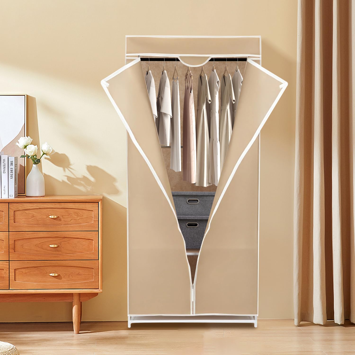 Sakugi 単衣ラック-寮と家のための多機能ワードローブ、白