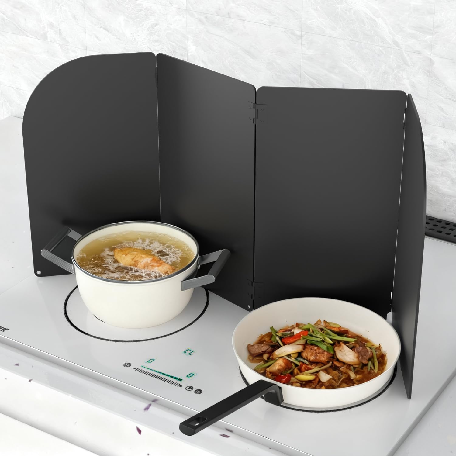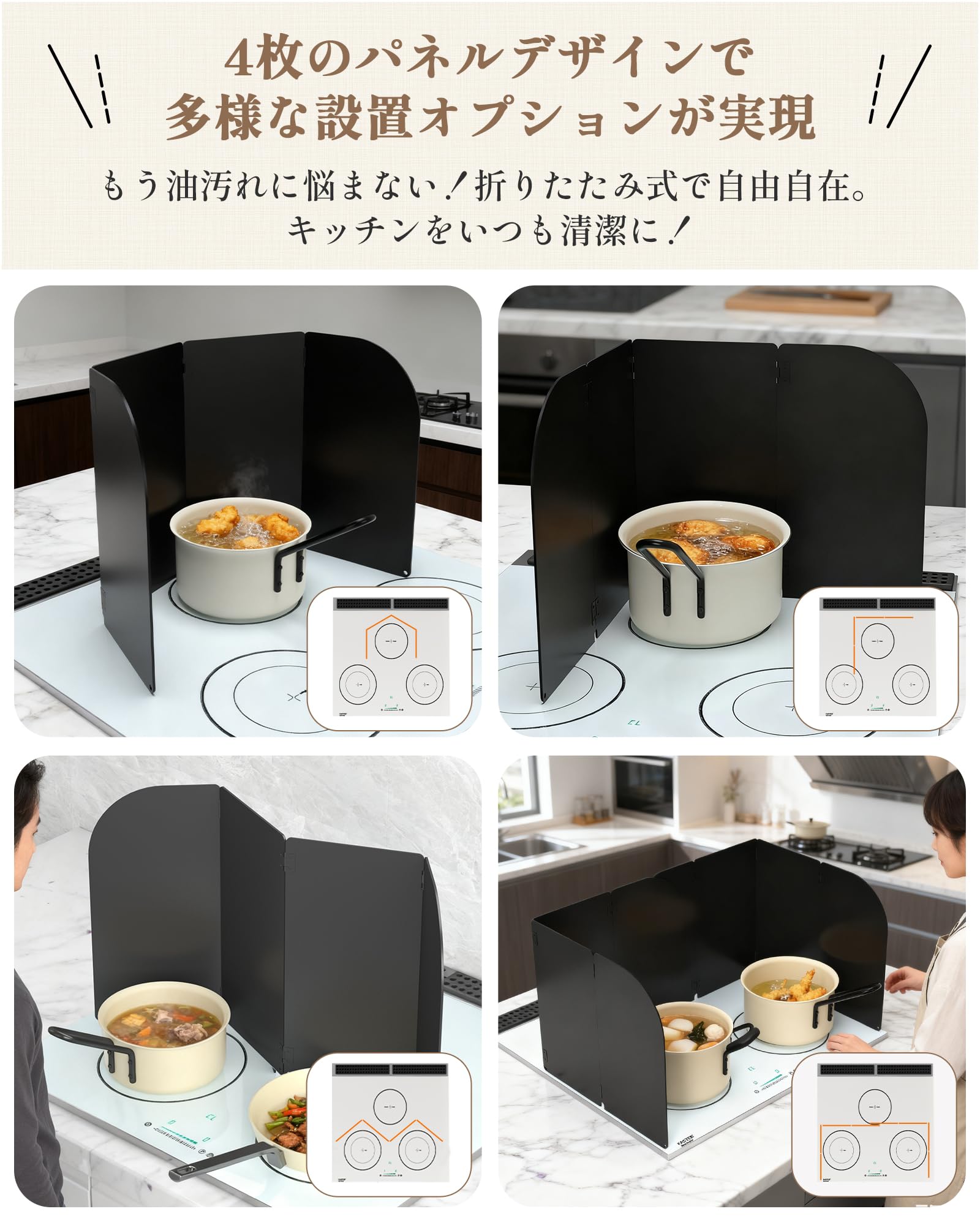 allbeschoi 油はねガード レンジガード 油はねガード 折り畳み式 お手入れ簡単 ストーブガード 油はねガード 油汚れ 水洗い 耐熱 アルミニウム 熱シールド レンジガード クックトップ撥油プレート 2個 (笑顔)