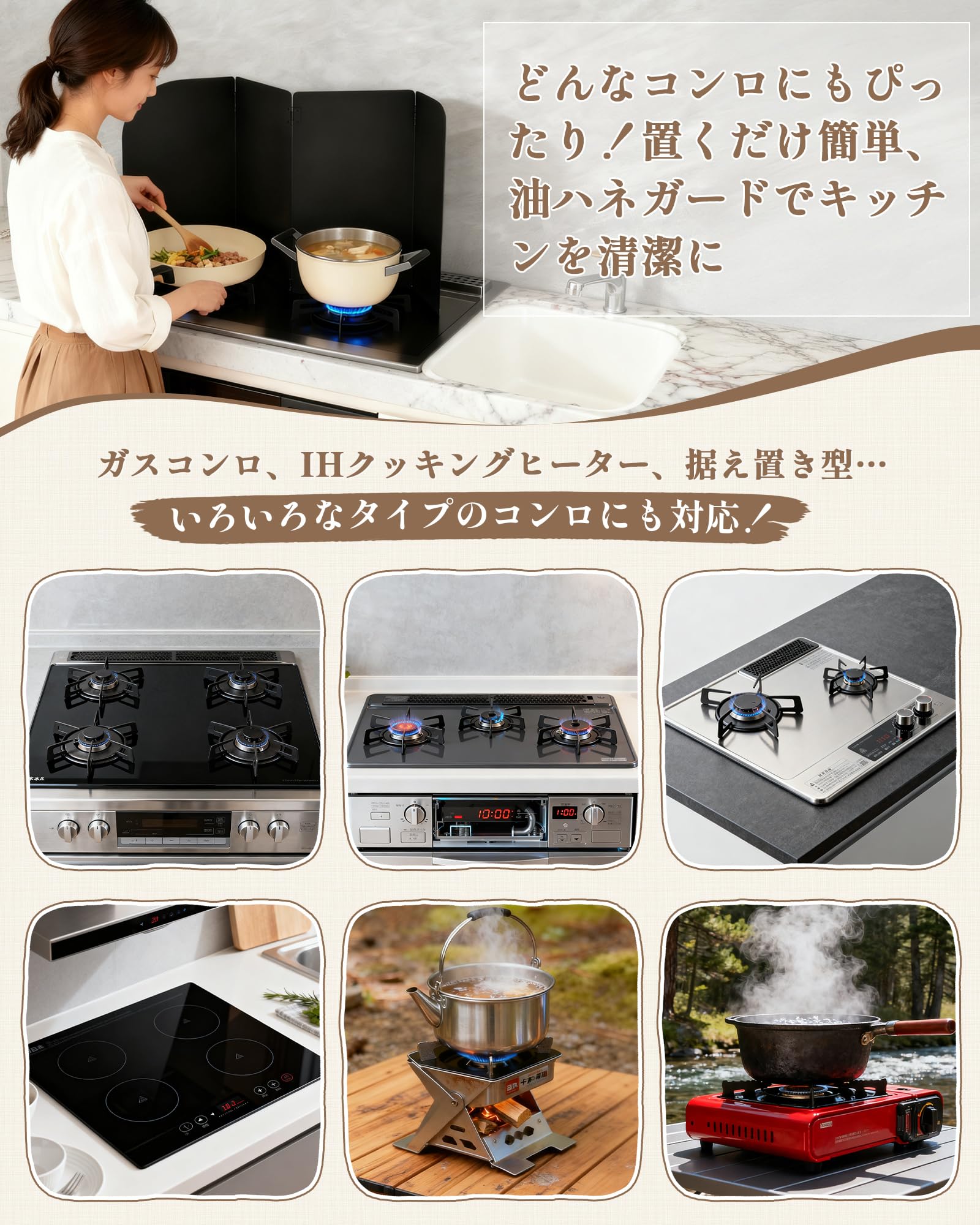 allbeschoi レンジガード 油はねガード 油はねガード 折り畳み式 お手入れ簡単 ストーブガード 油はねガード 油汚れ 水洗い 耐熱 アルミニウム