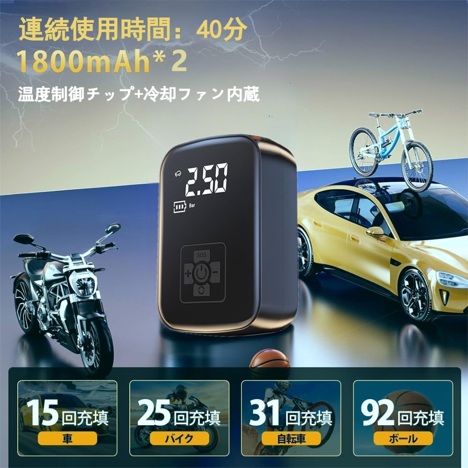 【Fanwer】【大功率&高速充填】デジタル空気入れ 充電式 電動空気ポンプ 車/バイク/自転車/ボール対応 自動停止 携帯 緊急用 タイヤ膨らまし器 アウトドア 家庭用 5分充填 強力モーター セット (パワフルモデル)