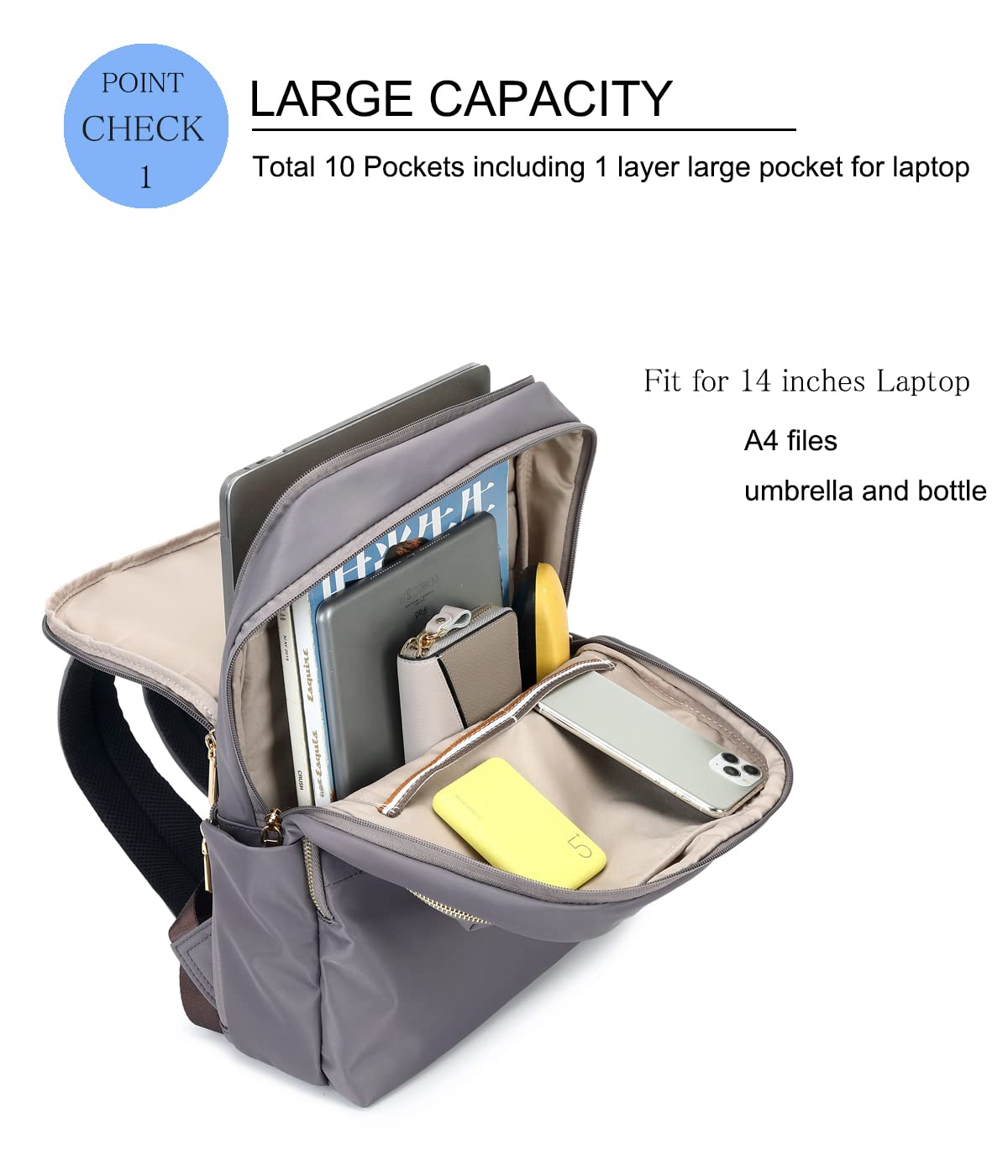 [HOMIEE] リュック レディース 軽量 バッグ 大人 A4 15ポケット 防水 14インチPC ビジネス バックパック マザーズバッグ おしゃれ 通学 通勤 人気 ファッション ナイロン 大容量 メンズ 男女兼用 バックパック トラベル ギフト