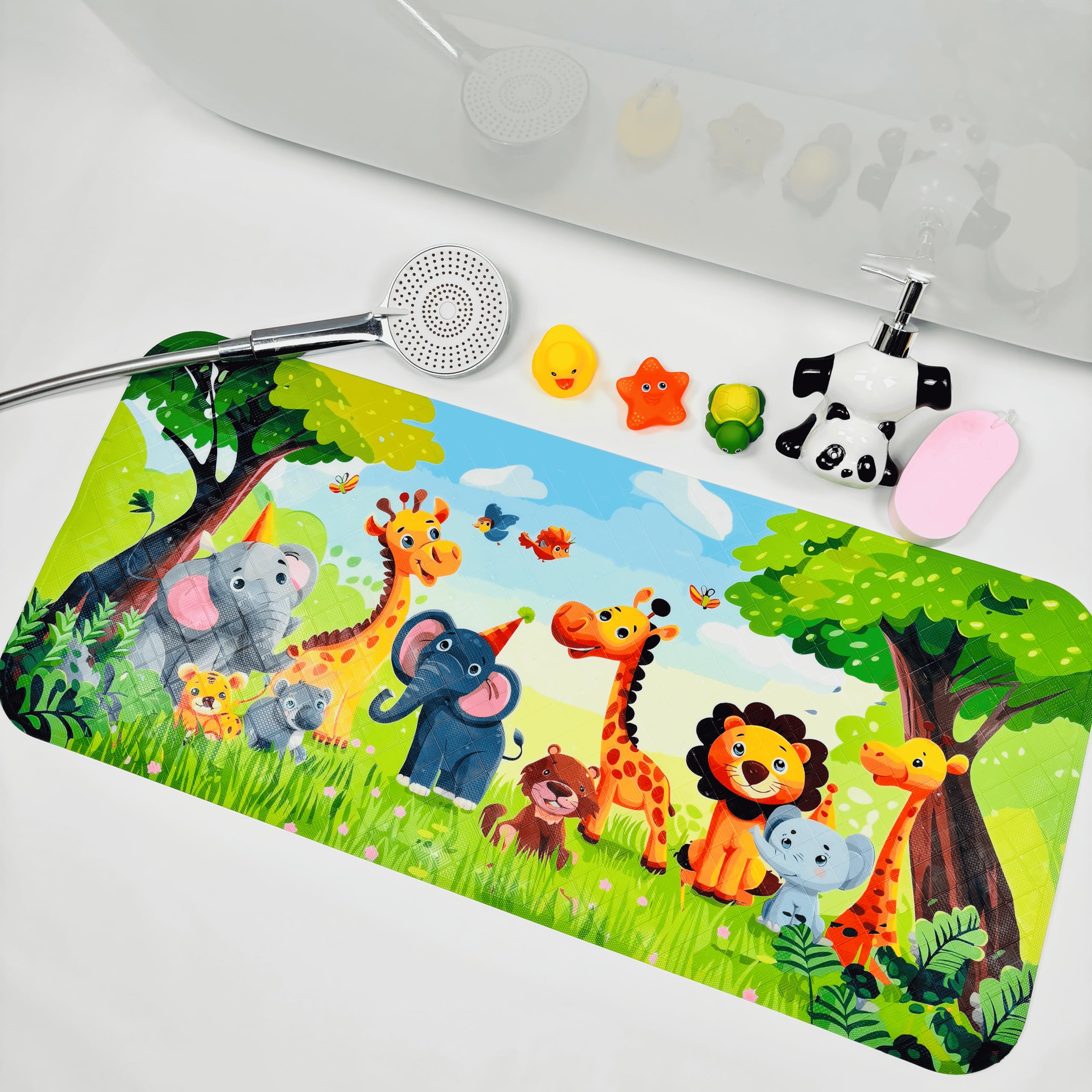 可愛いカートゥーン浴槽用滑り止めマット|お風呂・シャワー用 すべり防止バスマット 39×89cm (ジャングルの動物たち)
