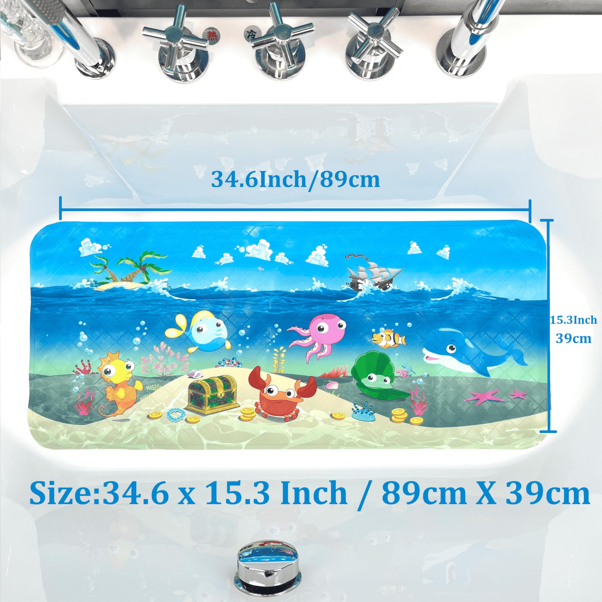 可愛いカートゥーン浴槽用滑り止めマット|お風呂・シャワー用 すべり防止バスマット 39×89cm (船)