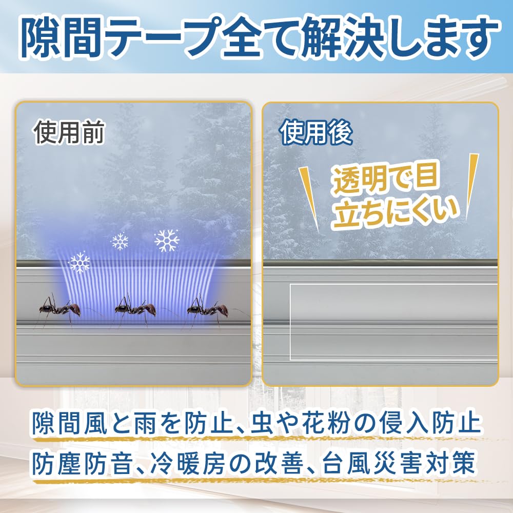 Luballter 隙間テープ 窓 防寒 隙間風防止テープ 長さ25m(幅5cm) 貼るだけ きれいにはがせる 夏涼しく 冬暖かく 窓 断熱 冷気遮断 結露抑制 窓隙間テープ 防水 防風 防音 防虫 多用途 網戸 ドア 玄関 サッシ 台所テープ 透明