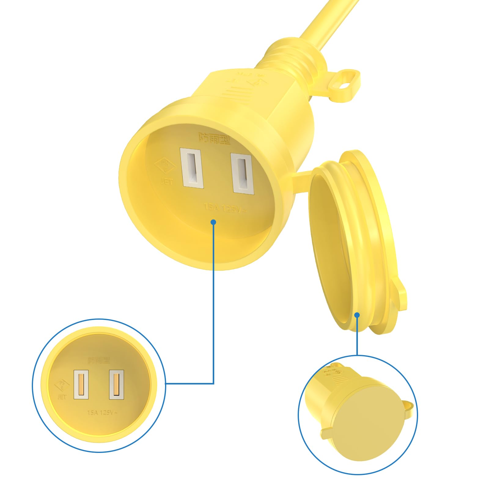 HITRENDS 屋外 防水防雨型 延長コード 15m (PSE認証) 電源タップ 延長ケーブル 防雨キャップ付 1500W 防雨型 エコ 電動工具、草刈り機、照明用、掃除機 屋外 作業用 長さ 5m,10m,20m選択可能 (イエロー15m)