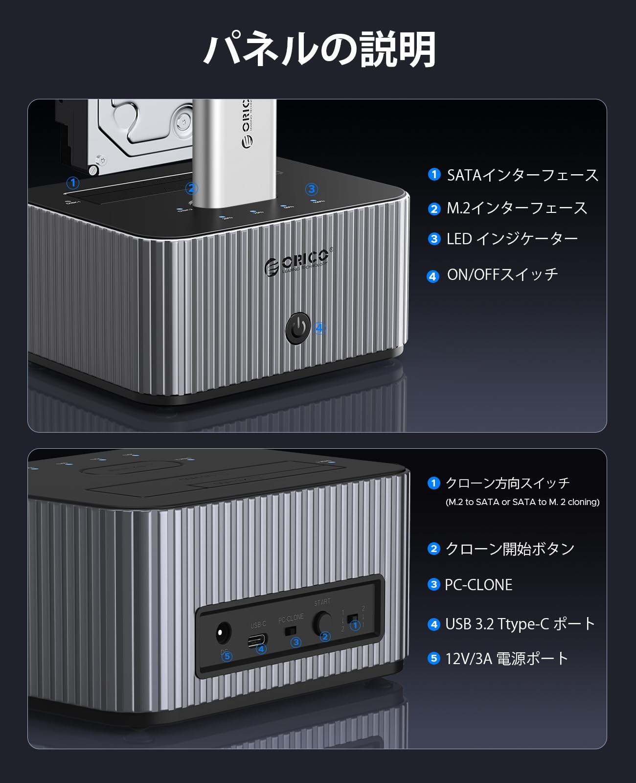 ORICO HDDスタンド 2台搭載 40TB HDD SSD クローン/コピー 2.5 インチ/3.5 インチ Seagate Samsung WD Crucial SanDisk SSD HDD対応 SATA - USB C PS5 PC ラップトップデバイス用 DD28C3-C