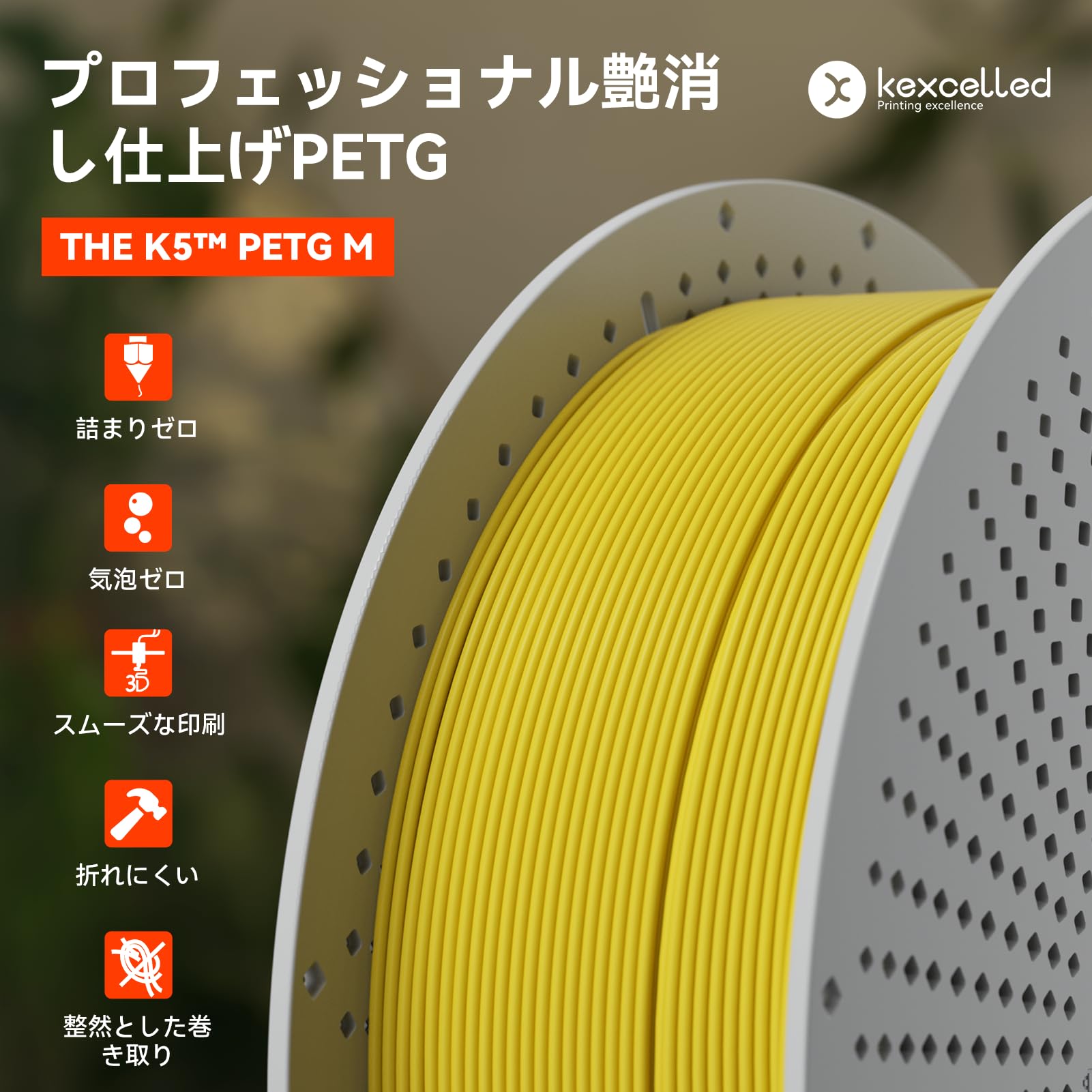 Kexcelled マットPETG つや消しの質感 紙ボビン 3Dプリンターフィラメント素材 1.75mm径 ほとんどのFDM 3Dプリンターに対応 スプール造形材料 寸法精度+/- 0.03mm 正味量1kg(2.5lbs) 温かい黄