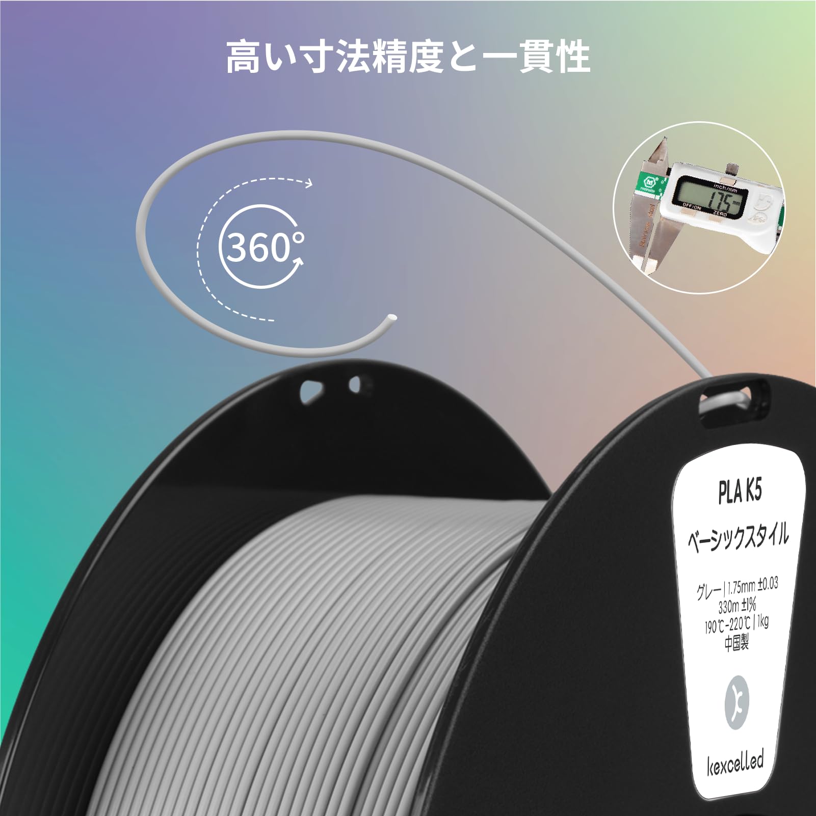 Kexcelled PLA K5 フィラメント 1.75 mm 1 kg 高強度・高靭性 高性能&耐久性 詰まり防止 真空乾燥パック 多色選択 3Dプリンター用 PLAリフィル ブラック