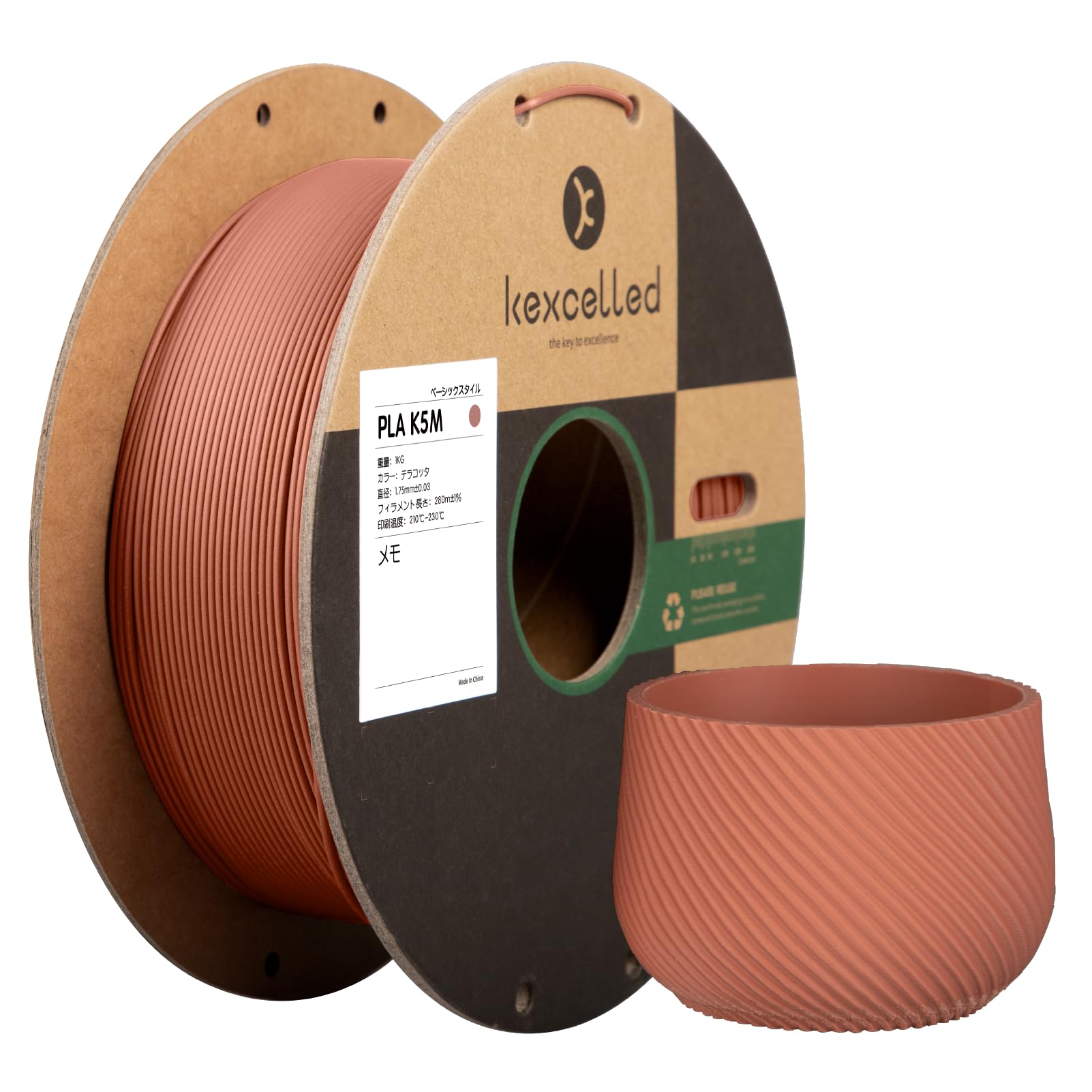 Kexcelled マットPLA つや消しの質感 紙ボビン 3Dプリンターフィラメント素材 1.75mm径 ほとんどのFDM 3Dプリンターに対応 スプール造形材料 寸法精度+/- 0.03mm 正味量1kg(2.2lbs) テラコッタ