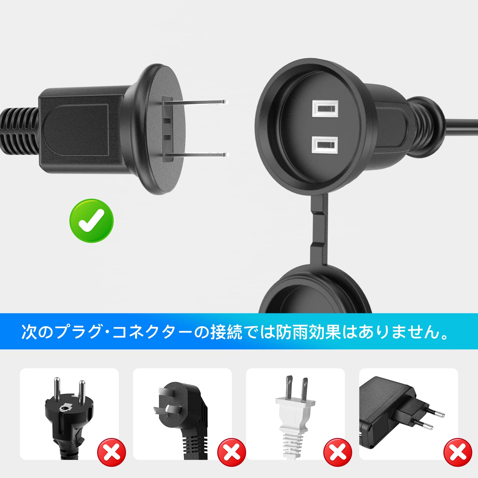 POWSEED 屋外 防水 延長コード 延長ケーブル 15A/125V 2m 蓋付き ソフトタイプ AC電源ケーブル 防雨型コンセント 電源コード 防水 防塵 屋内 家庭 オフィス 作業用 2芯 汎用