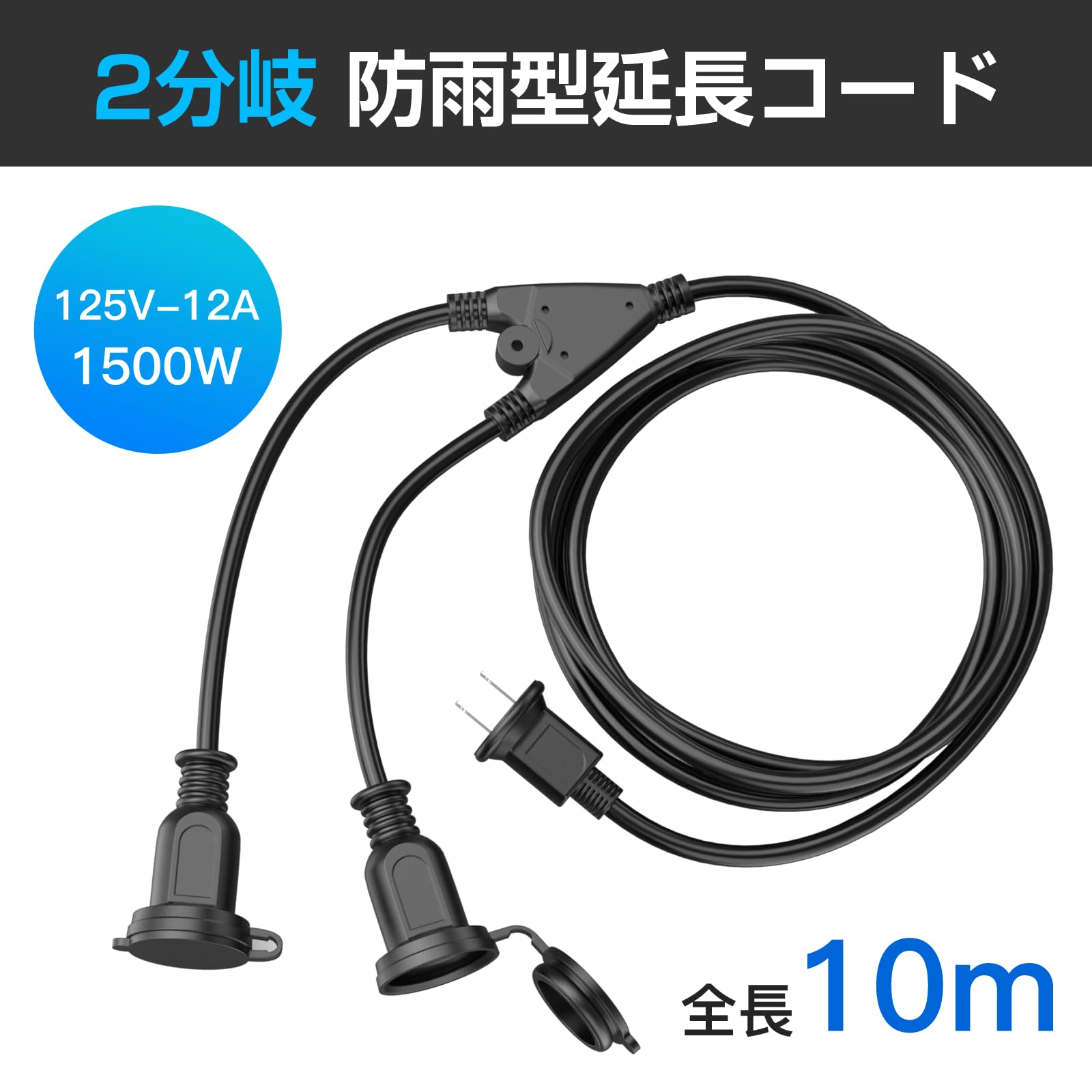 延長コード 10m 防雨型 2分岐 防水 屋外 延長コード 2m 3m 5m 10m選択可能 PSE認証済 (10m, 2分岐)