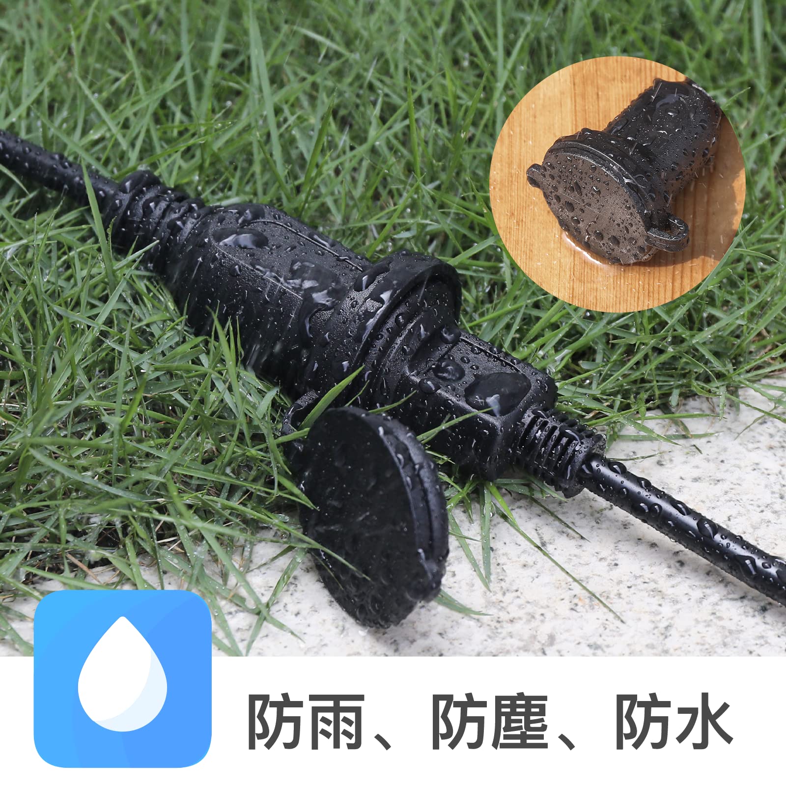 DanYee 防雨型 延長コード エコ 屋外 防雨キャップ付 作業用電源 延長ケーブル (1m)