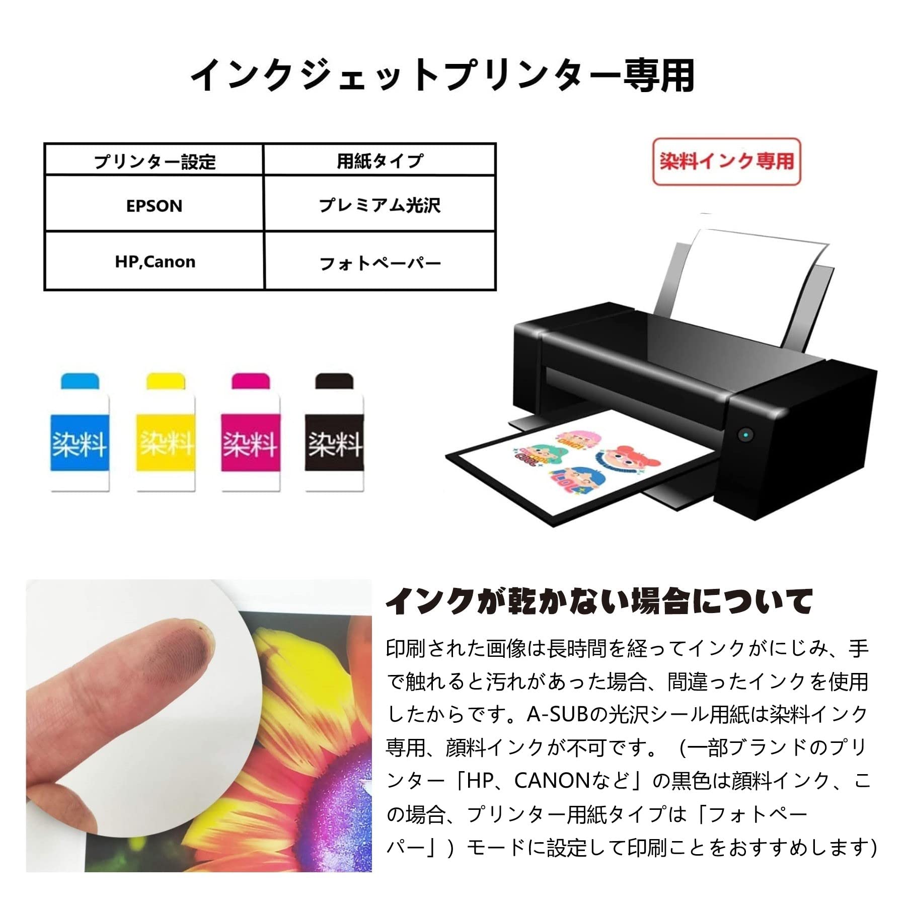 A-SUB 写真シール ラベルシール A4光沢紙 手作りステッカー用紙 ノーカット貼れる 50枚入り インクジェット用紙 ホワイト