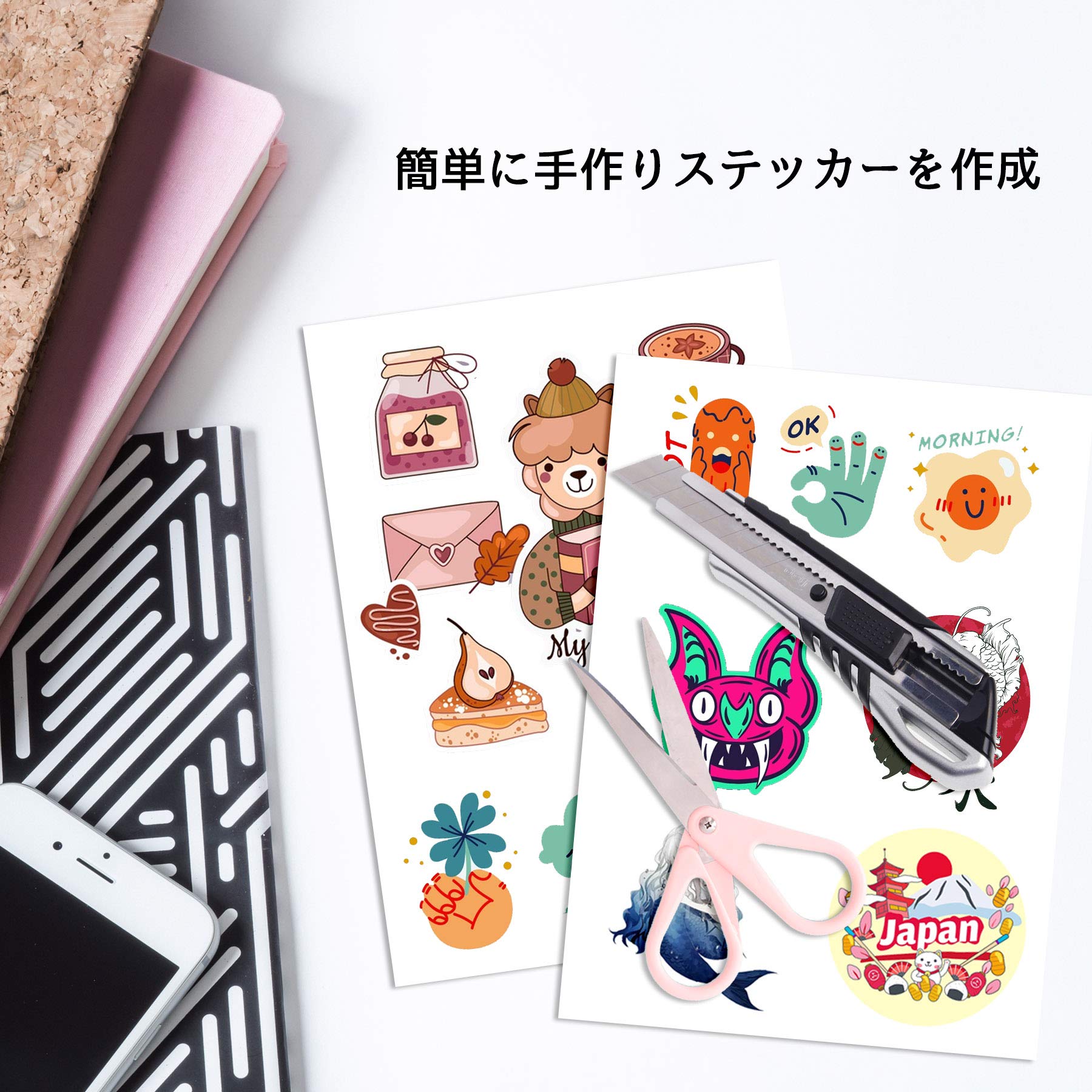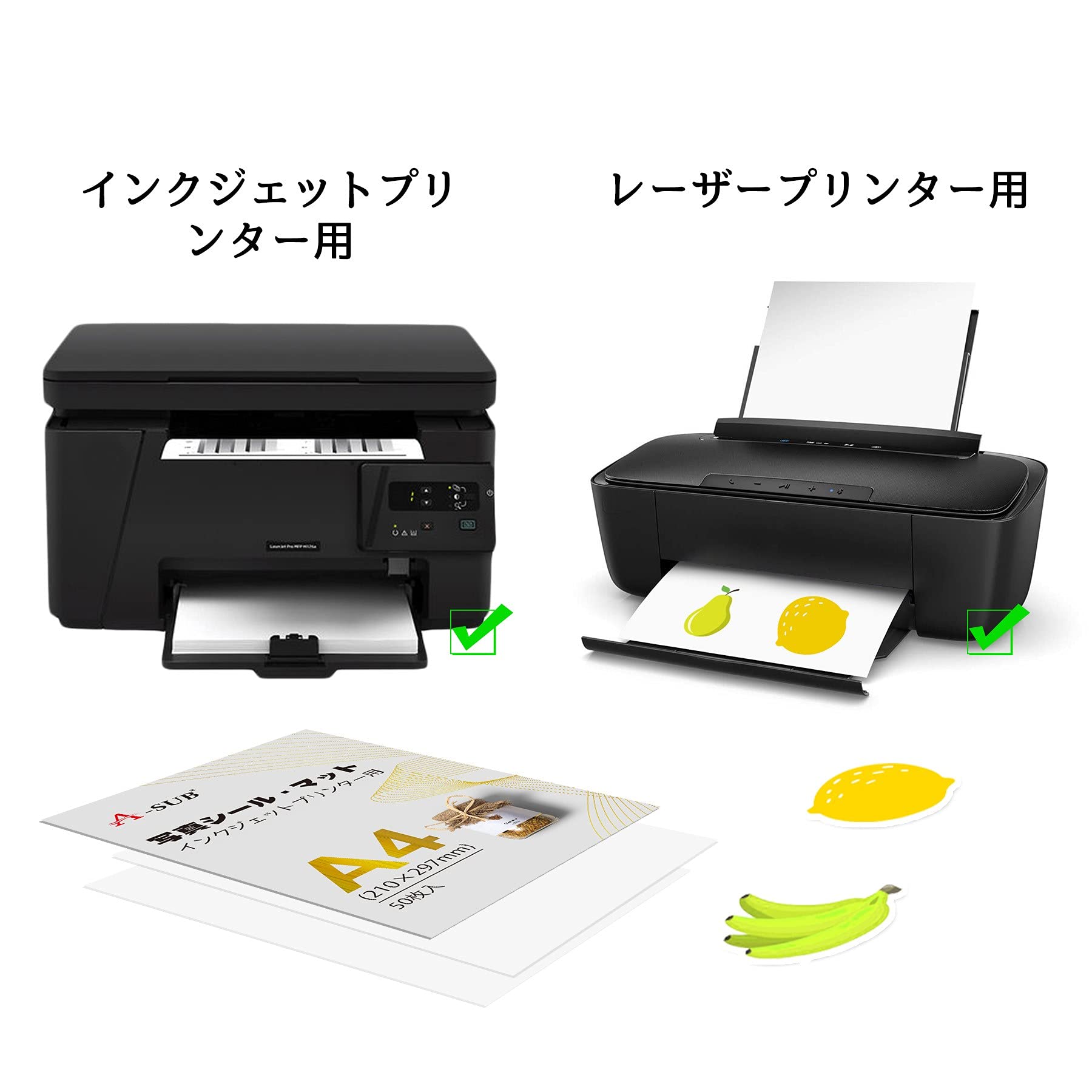 A-SUB 写真シール ラベルシール A4 マット紙 普通紙シール 手作りステッカー用紙 インクジェット レーザー両用 ノーカット 貼れる 50枚入り ホワイト