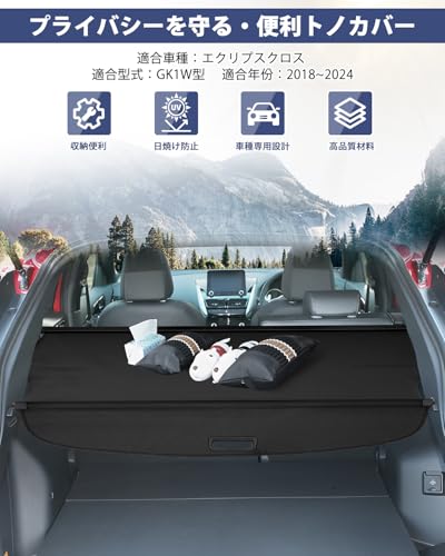 Mixsuper エクリプスクロス GK系 トノカバー ロールシェード Eclipse Cross GK1W型 カバーカーテン ラゲージ収納 プライバシー保護 2018年~2024年 車種専用設計 耐高温 盗難防止 荷室整理 PVC材質 防水加工 カスタムパーツ 1PCS