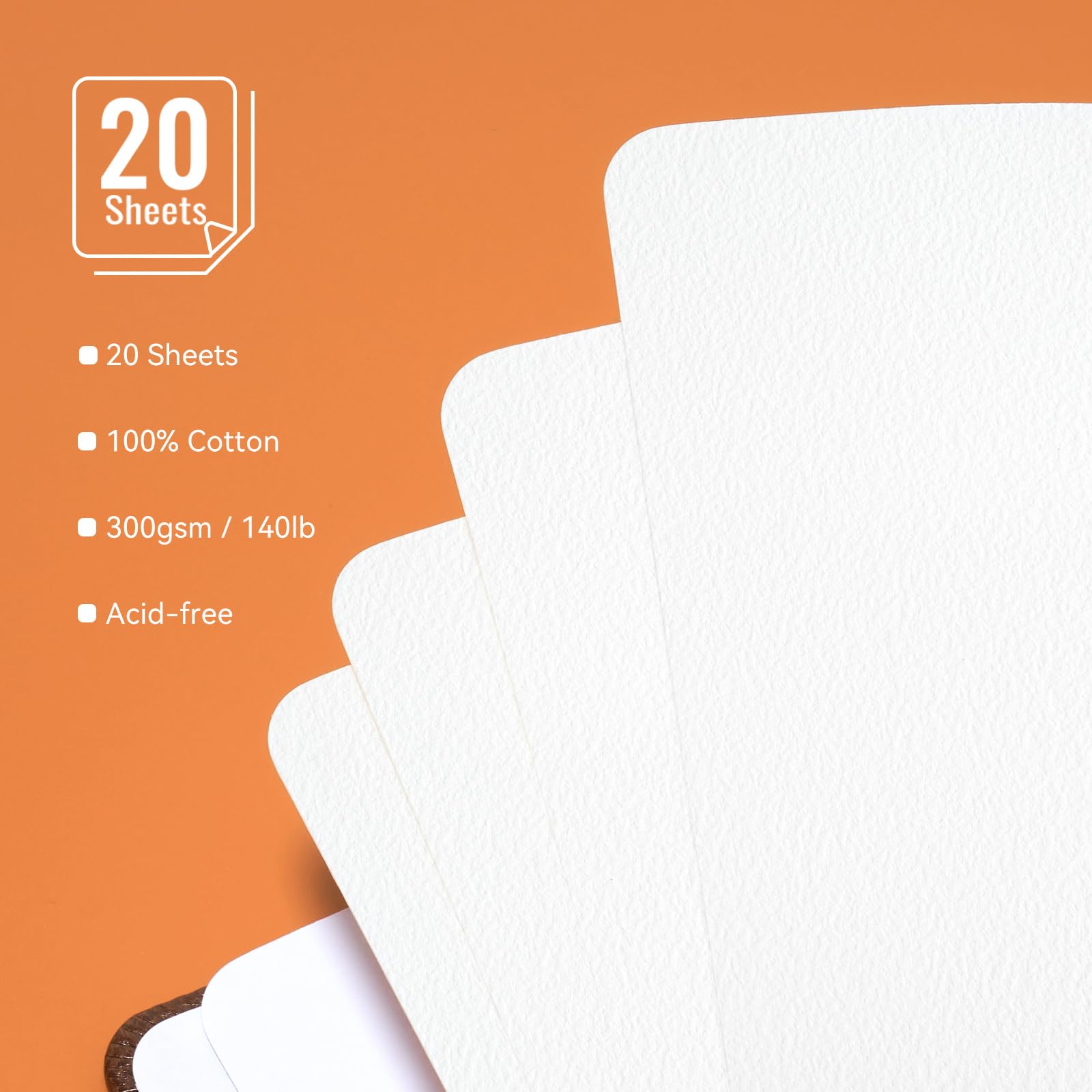 LIGHTWISH アーティスト 水彩ペーパーブロック コールドプレス 7.87 x 5.43インチ 20枚 4面ガルト 綿100% 140ポンド 300GSM 無酸性 アート用品 ウェット/ドライ/ミクストメディアペインティング用 プレミアムアートペーパー
