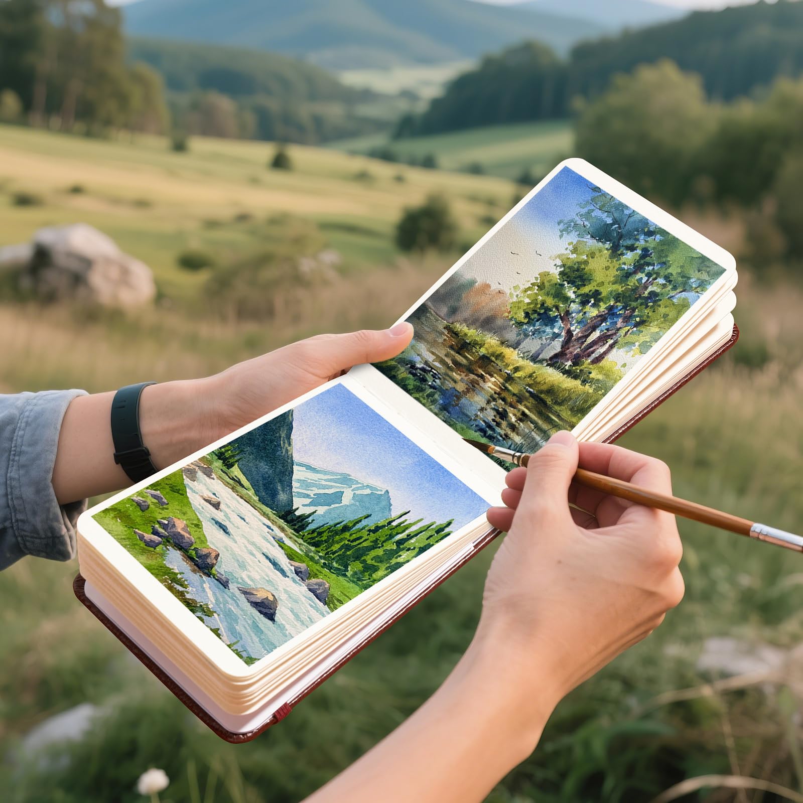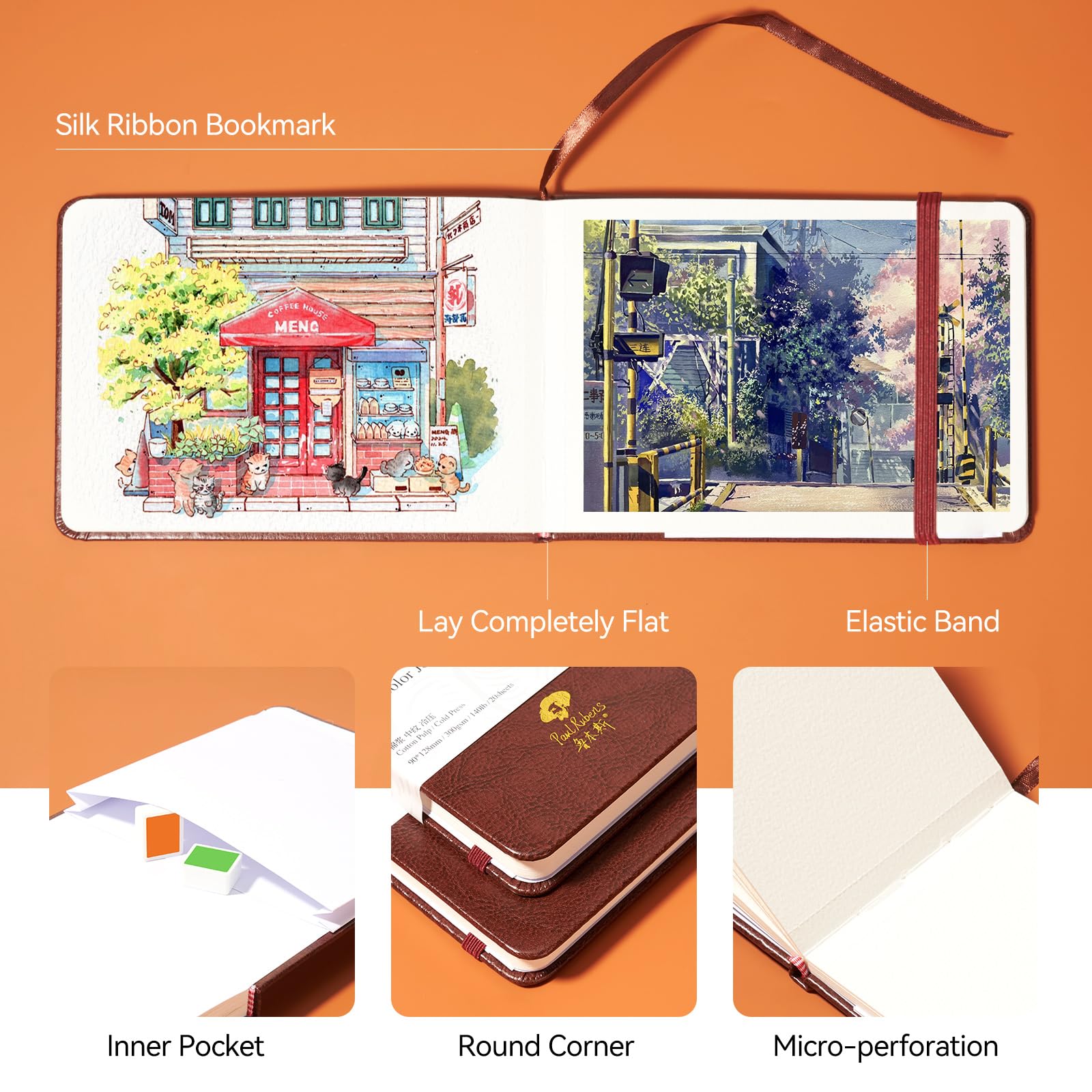 Paul Rubens 水彩日記帳 2パック 40枚 綿100% 無酸 コールドプレス 水彩スケッチブック 7.24 x 5.12インチ 140ポンド/300gsm 水彩絵の具、グワッシュ、アクリル用
