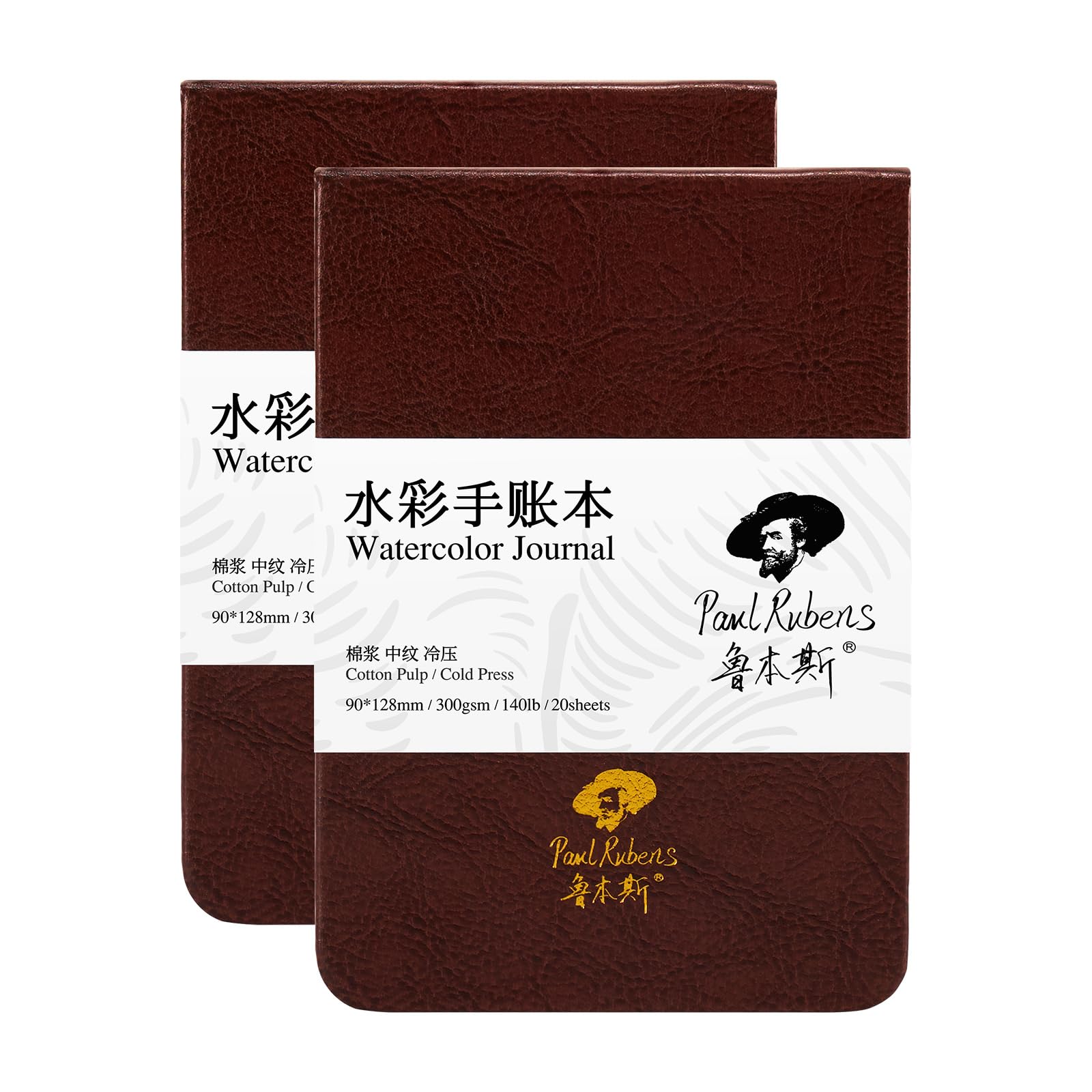 Paul Rubens 水彩日記帳 2パック 40枚 綿100% 無酸 コールドプレス 水彩スケッチブック 3.54 x 5.04インチ 140ポンド / 300gsm 水彩絵の具、グワッシュ、アクリル用