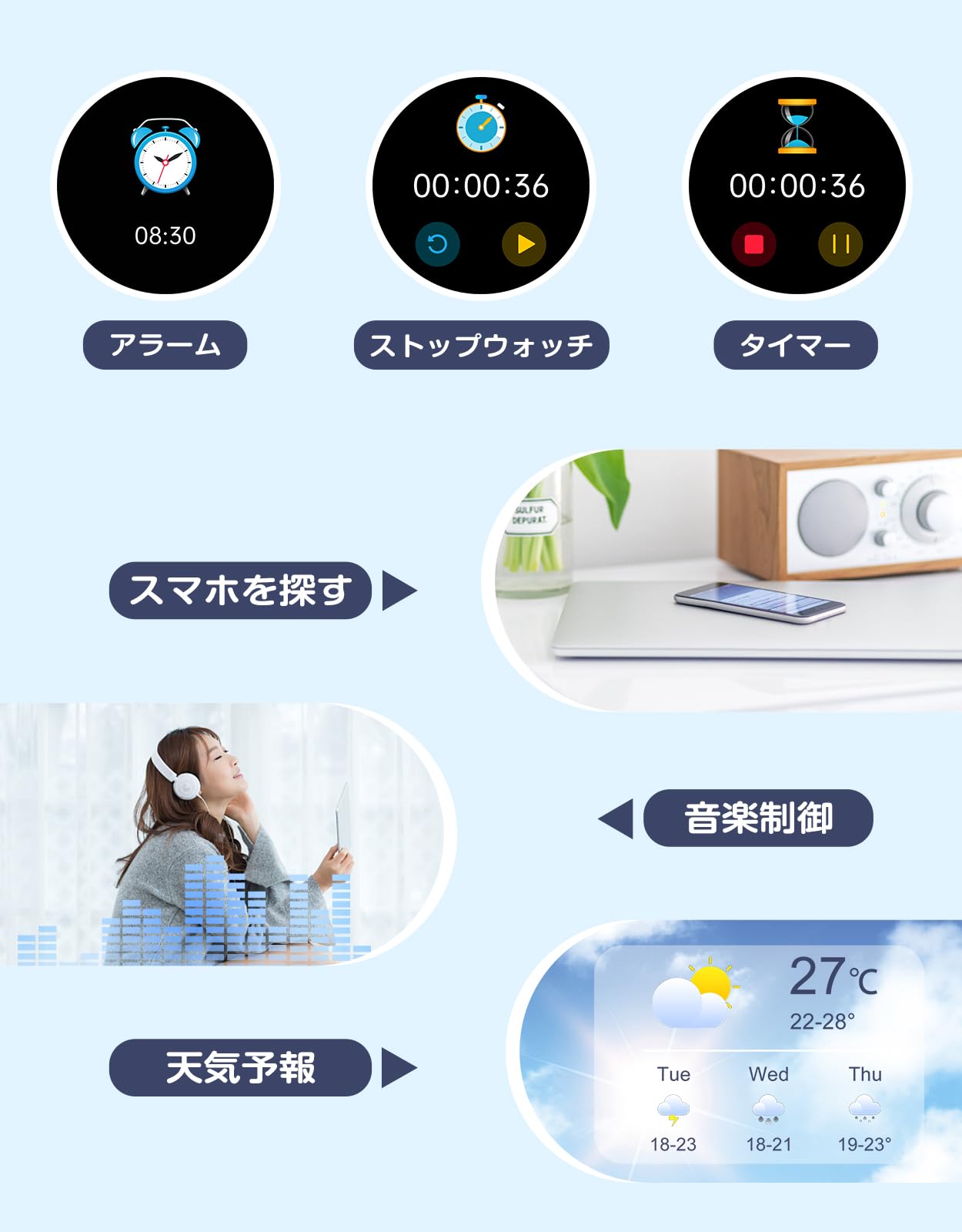 RUIMEN スマートウォッチ 通話機能付き レディース Smart Watch iPhone アンドロイド対応 女性生理周期管理 歩数計 腕時計 着信通知 懐中電灯 天気予報 音楽制御 IP68防水 長持ちバッテリー ストップウォッチ 目覚まし時計 長座注意 スマート探す 日本語説明書 交換バンド付属