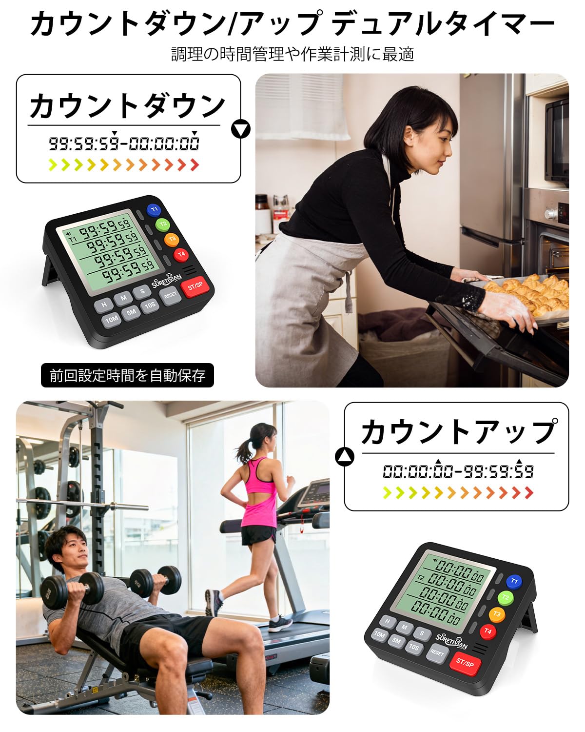 Spolehli キッチンタイマー 業務用調理タイマー 8チャンネル リマインダー レストランタイマー バーガーベーカリー ステンレス製 大音量アラーム 家庭料理 ホテル レストラン用 日本語取扱説明書付き