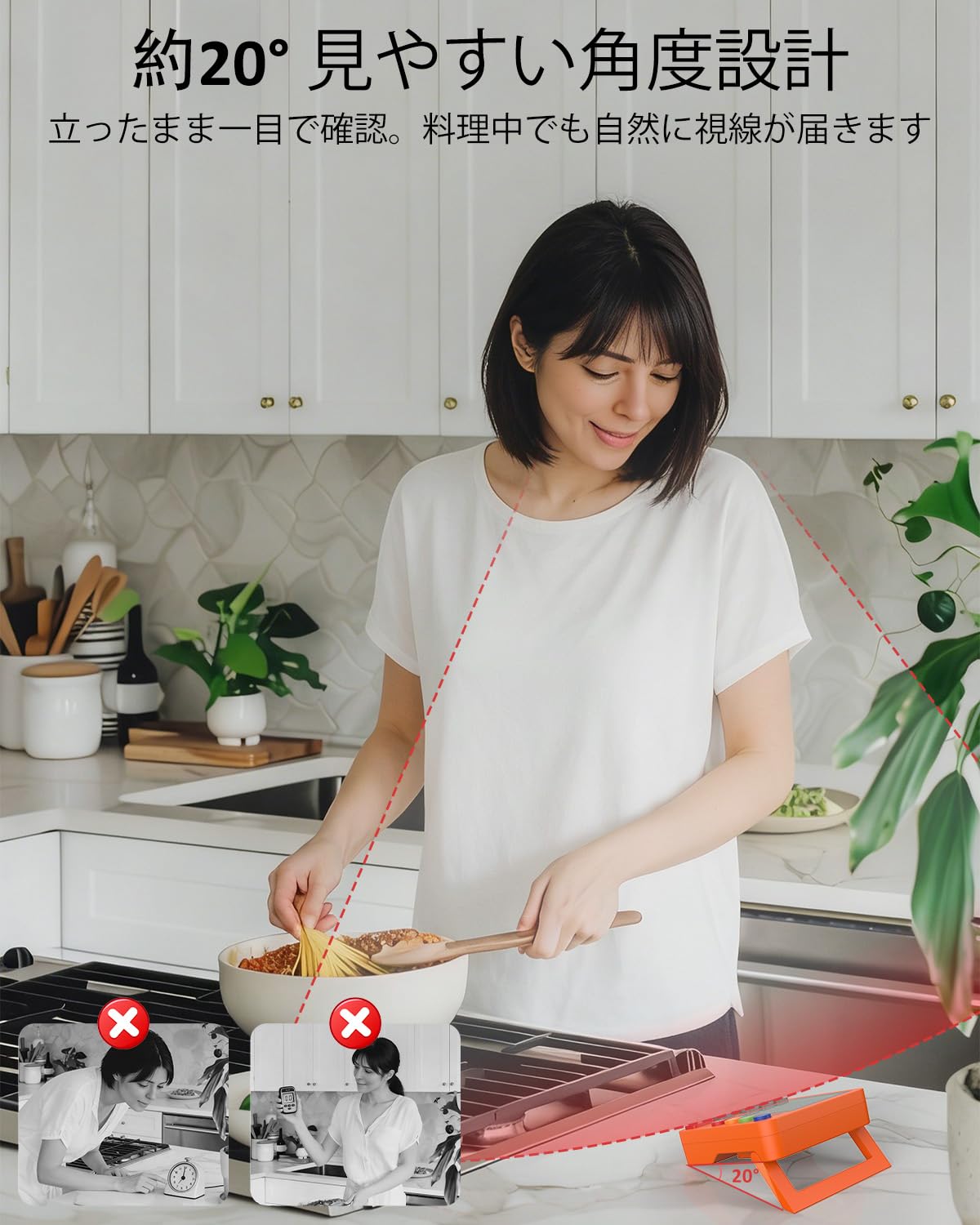 キッチンタイマー 4チャンネル デジタルタイマー 大画面 アラーム・静音切替 カウントアップ/カウントダウン タイマー 卵・勉強・教室・運動用 電池付 (ホワイト)