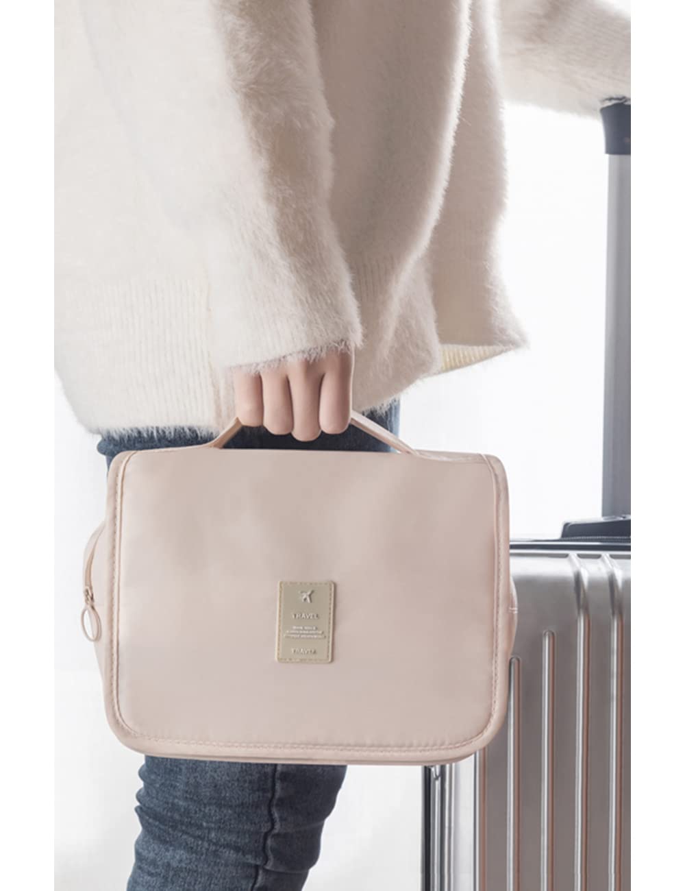 ALLMIRA トラベルポーチ 吊り下げ ポーチ 旅行用 洗面用具 トイレタリーバッグ 大容量 防水 フック付き 旅行 バッグ トラベル おしゃれ (ピンク 1)