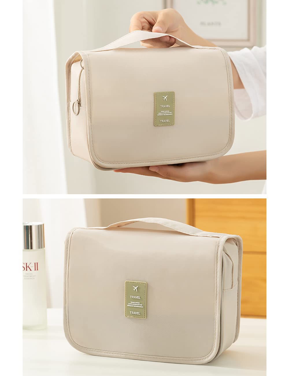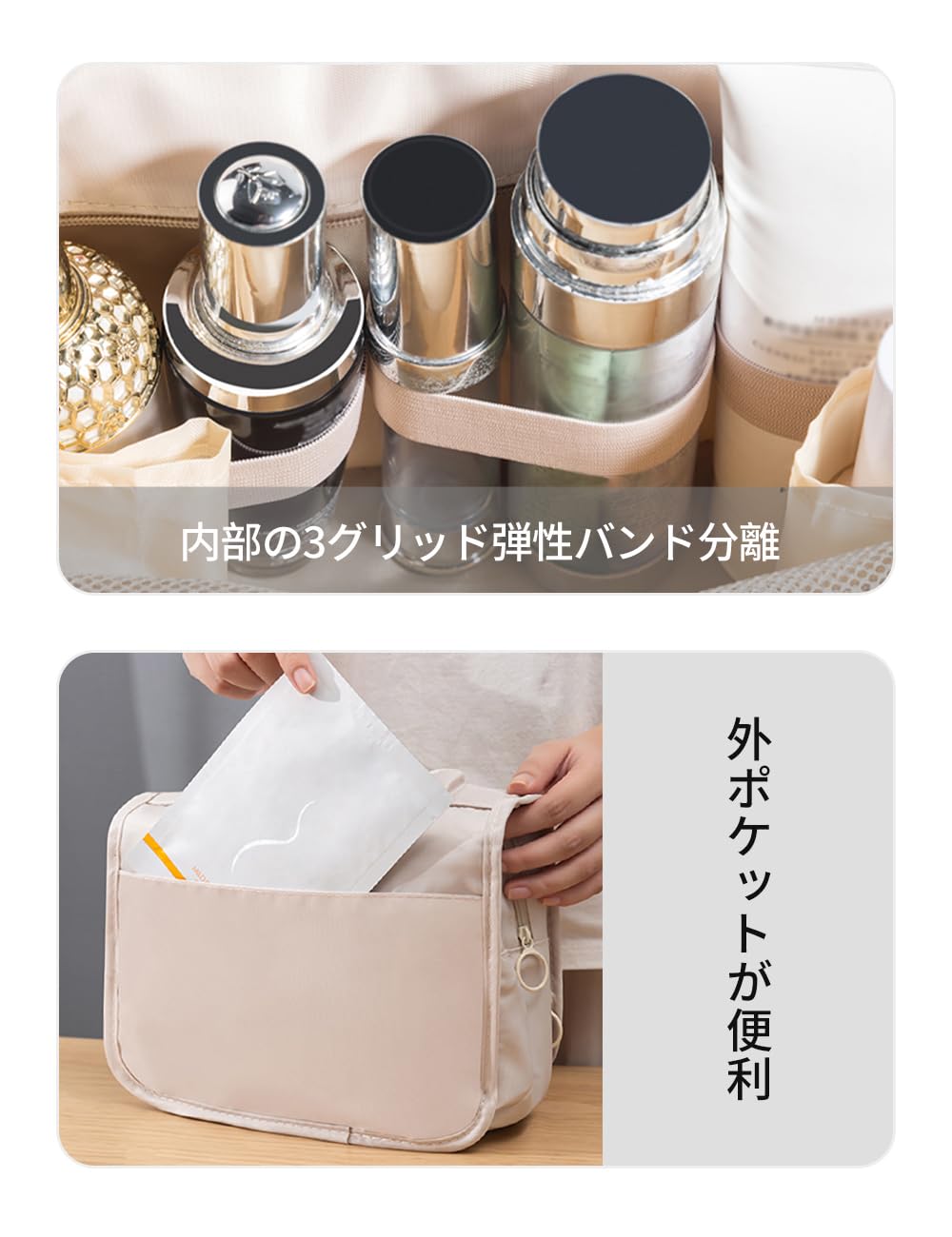 説明【メイン素材】: 高品質のオックスフォード生地,はあなたの洗面用具の清潔と乾燥をさせます。通気性が良く異臭はなく、防水性、防塵性と耐用性もあります。 【収納力に優れる】化粧品、ヘアアクセサリー、シェービングツール、小物などの小物を収納できる3層ポケットを装備。前面が開放され、中身が一目でわかり、出入りがスムーズ。小型ドライヤーも快適に収納できます。 メインポケットは広いスペースがあり、ゴムバンドで仕切られており、化粧品ボトルを直立させて液体化粧品の漏れを防ぐことができます。 背面にはマスクを収納するためのポケットもあります。 【壁掛け可能】吊り下げ用の360°回転フック付きなので、壁に引っ掛けておけば物を取り出すのは楽々、物を取ったり置いたり便利です。それに、丁寧に縫製された手提げも付いているので、どこにも持ち運ぶ可能です。 【広い用途】出張やレジャー、旅行用にはぴったりとして、スポーツジム、アウトドア、ゴルフ場、キャンプ、温泉、アウトドア、自動車や家のトイレ中などの様々なシーンで大活躍します。 【コンパクトでポータブル】コンパクト、丈夫、ポータブル、軽量。私たちの旅行バッグは、出張、家族旅行、キャンプ、ビーチ、フィットネスの際にスーツケースに入れるのに最適です。化粧品、シャンプー、歯ブラシ、歯磨き粉などを同じ場所に置くことができます。旅行をより快適にし、必要なものをすべて1つのバッグに入れます。
