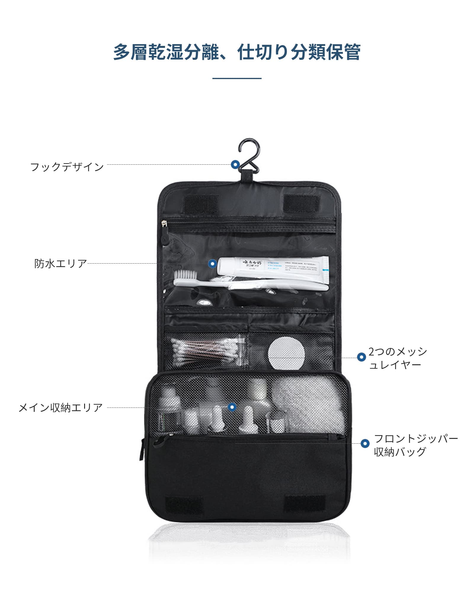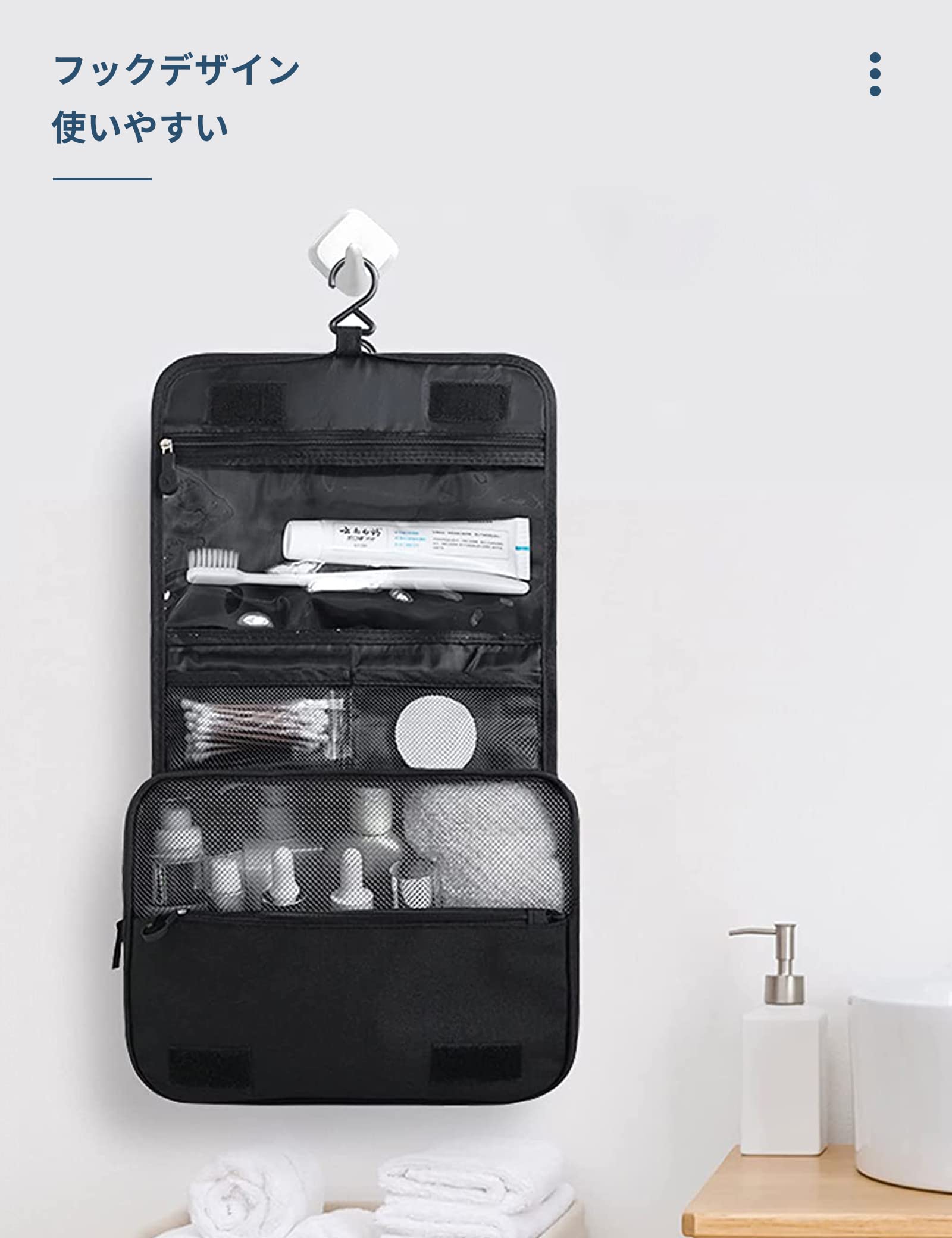 WANDF トイレタリーバッグ 吊り下げ トラベルポーチ 掛け式 化粧ポーチ コスメポーチ 洗面ポーチ 洗面用具ケース 撥水 大容量 出張 旅行 温泉