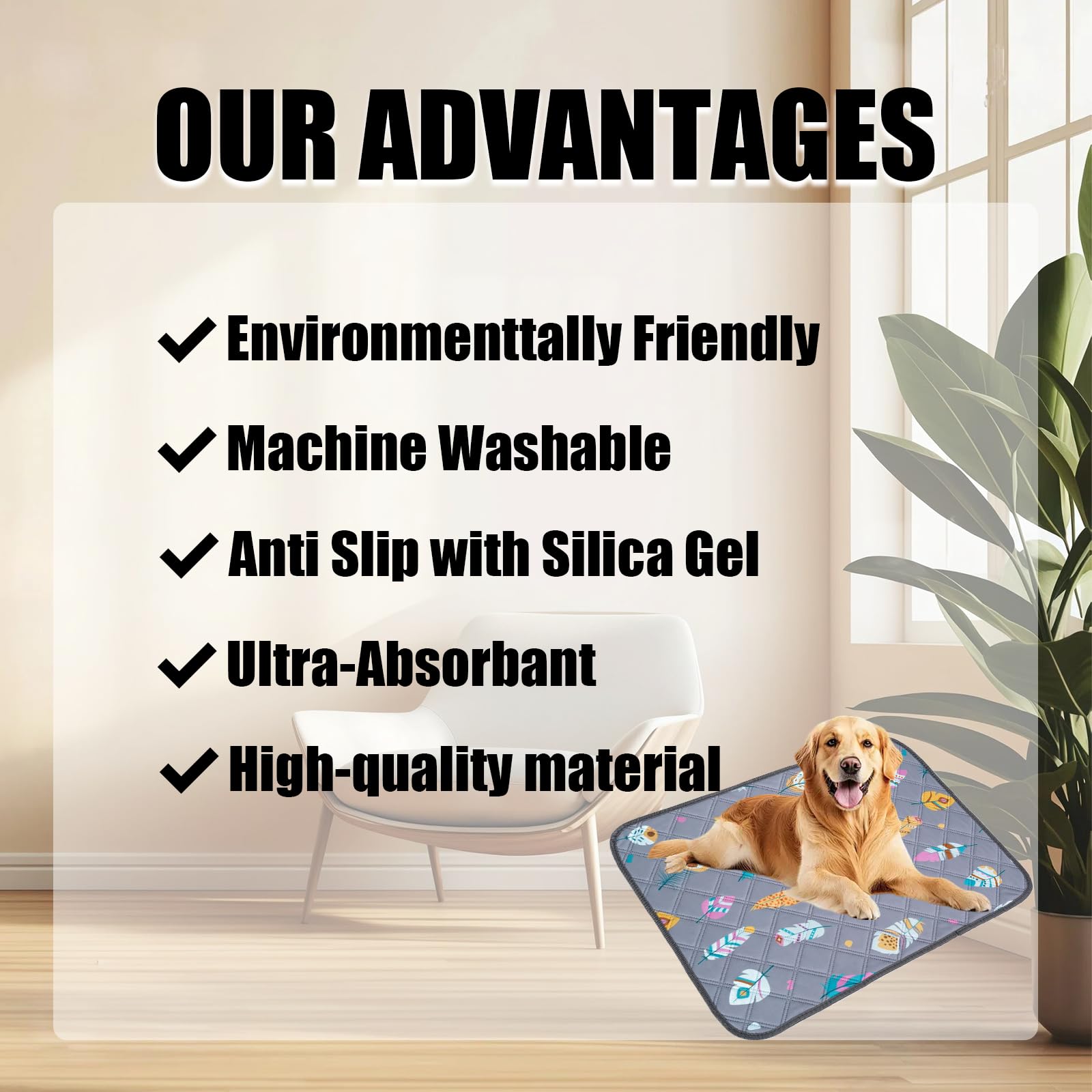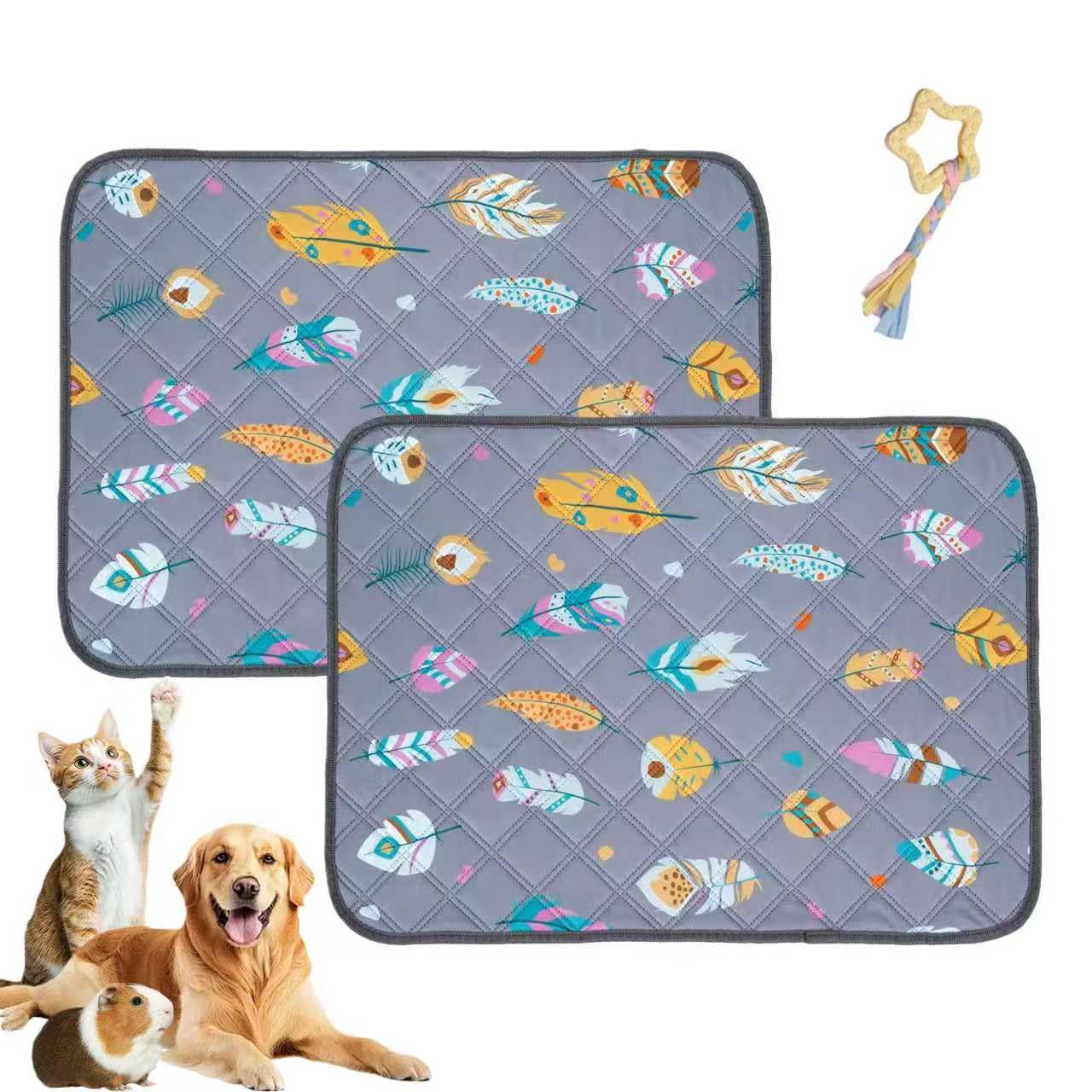 EatnMgan 犬用洗えるおしっこパッド、再利用可能な漏れ防止子犬ウィーウィーパッド、滑り止め防水おしっこパッド、高速吸収性(白羽、2個、23.6インチ×17.7インチ)