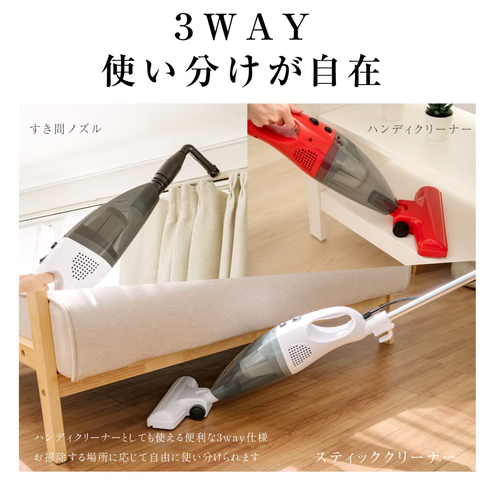 【アドアプス 】掃除機 コード式【12000Pa& HEPAフィルター&500W】 スティック クリーナー 10本ノズル 3WAY スティック掃除機 コード式 軽量 コンパクト 操作簡単 車載用 家庭用 レッド ad-sjk-108-rd