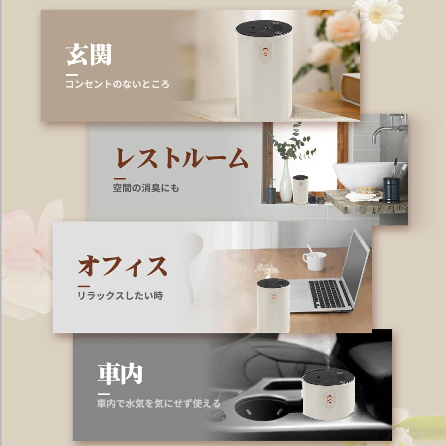 ENERG e's Tour アロマディフューザー 車載アロマディフューザー充電式 水使わない ネブライザー式アロマディフューザー 静音 20m空瓶付き T11-ENTRPP(ホワイト)
