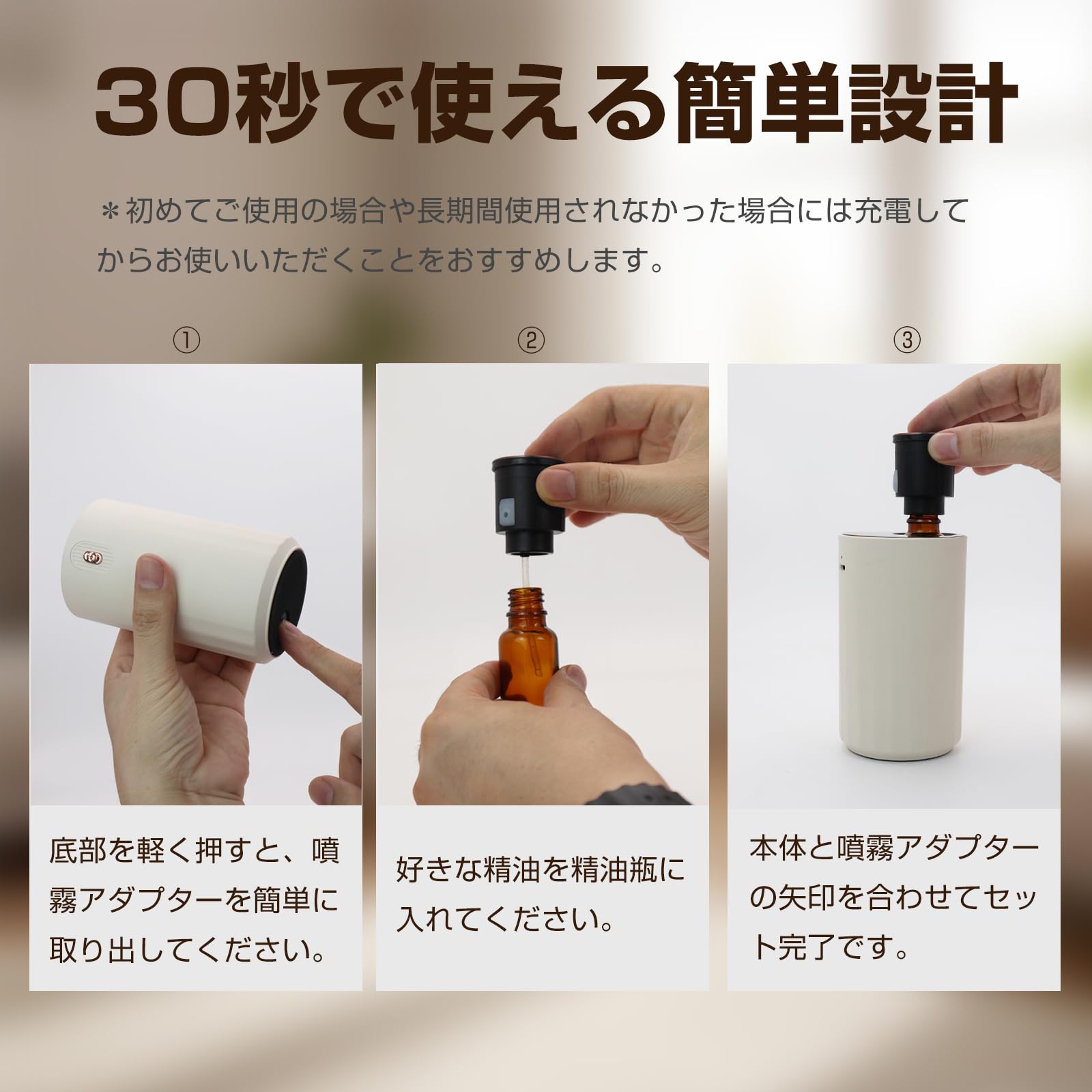 ENERG e's Explorer EX アロマディフューザー ネブライザー式 充電式 2025 持ち運び可能 水無しヨガ室 瞑想 ホテル 店舗 玄関 人気 タイマー機能 ノズルアダプタ2個 空瓶3個・スポイト1個付き T11-ENS1PW シルバー
