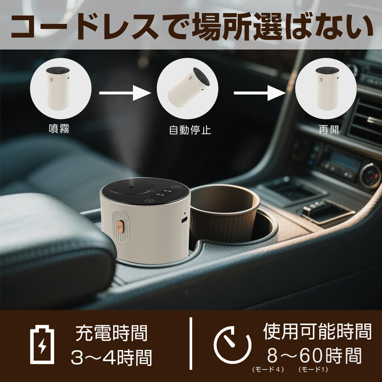 ENERG e's Voyage アロマディフューザー 車載アロマディフューザー充電式 車載連動起動 スマート 水使わないネブライザー式アロマディフューザー 静音 10m空瓶付き T11-ENTREX (木目調)