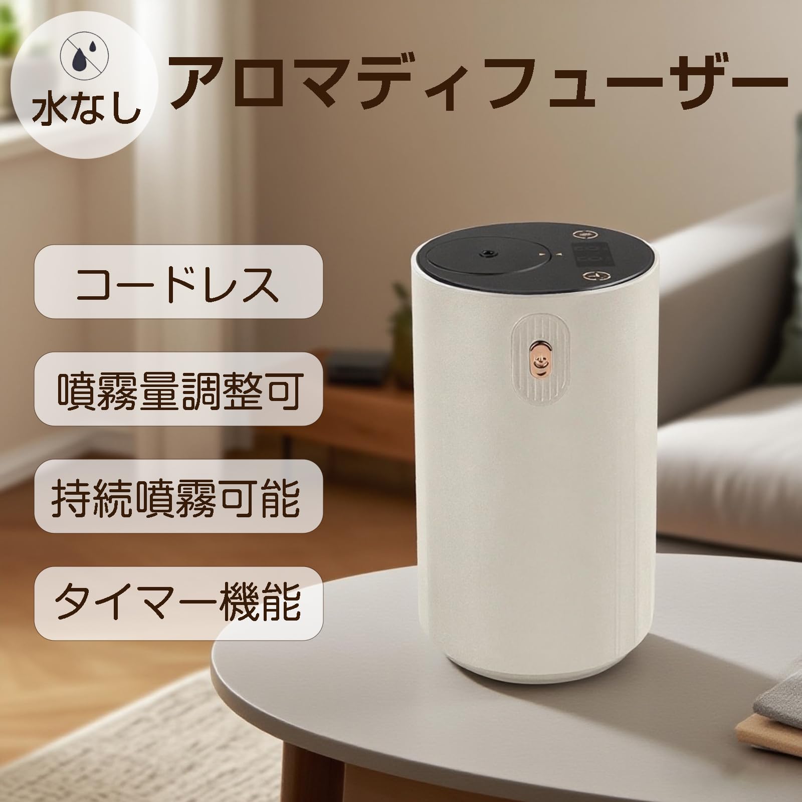アロマディフューザー ネブライザー式 水なし エルエンスタジオ コードレス車用ディフューザー アロマ芳香器 噴霧量調整可能 USB充電式 静音 精油瓶2個付き ヨガ室・部屋・車載・店舗などに適用 日本語説明書付き