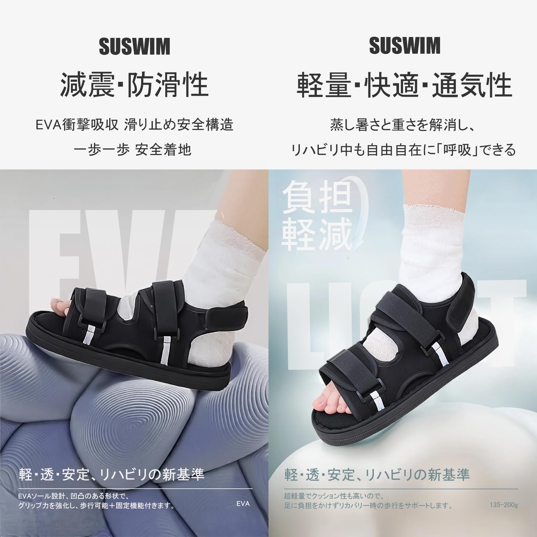SUSWIMギプス サンダル 介護シューズ リハビリ 骨折 捻挫 片足 左右兼用 調整可能 松葉杖 ューズ リハビリ 骨折 (25cm)