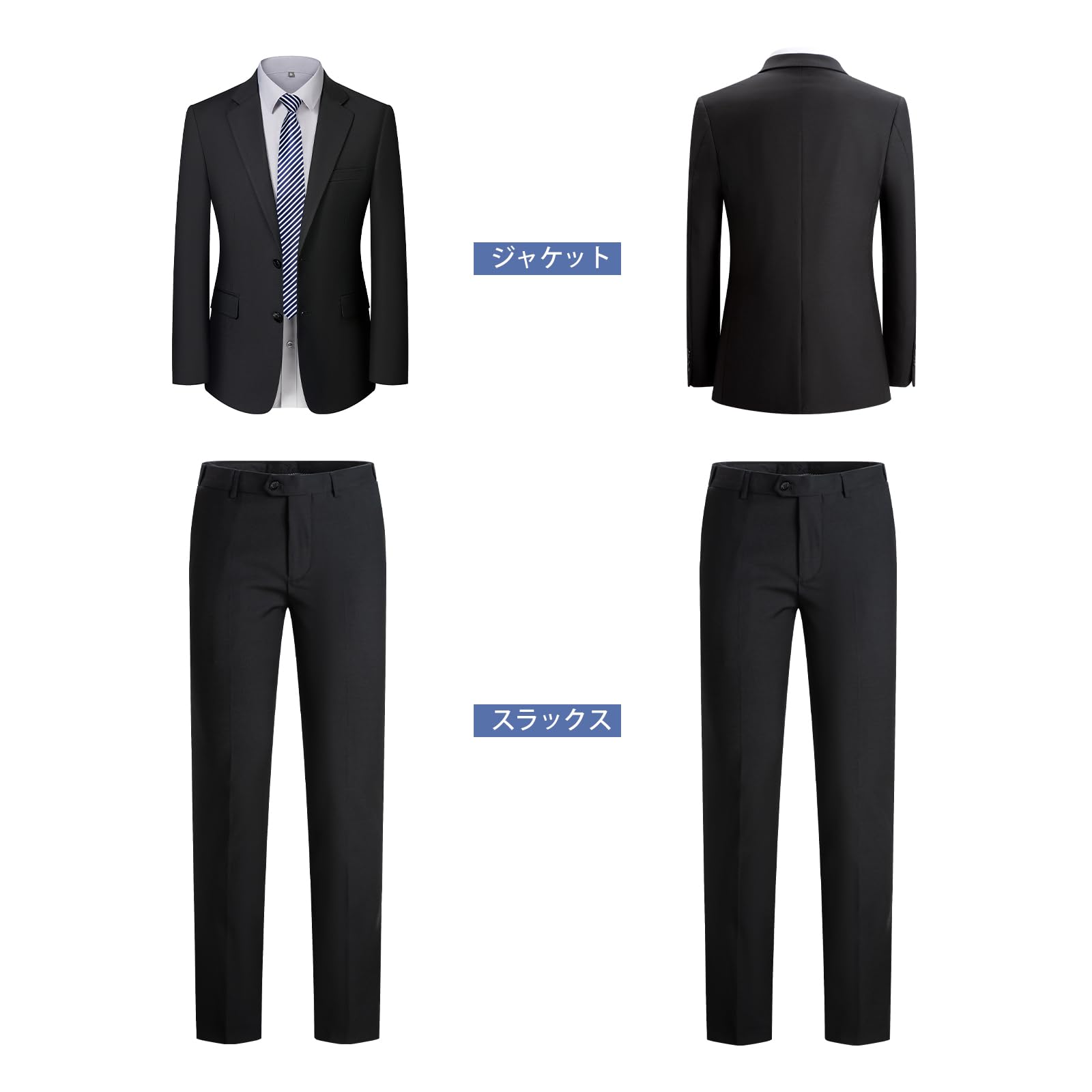 [JIMYXGOL] メンズスーツ 2点セット 洗えるスーツ メンズ ビジネス リクルートスーツ セットアップ スリムフィット 喪服 ストレッチ フォーマル 結婚式 ウエストゴム入り 入学式・卒業式・面接・通勤 春秋冬
