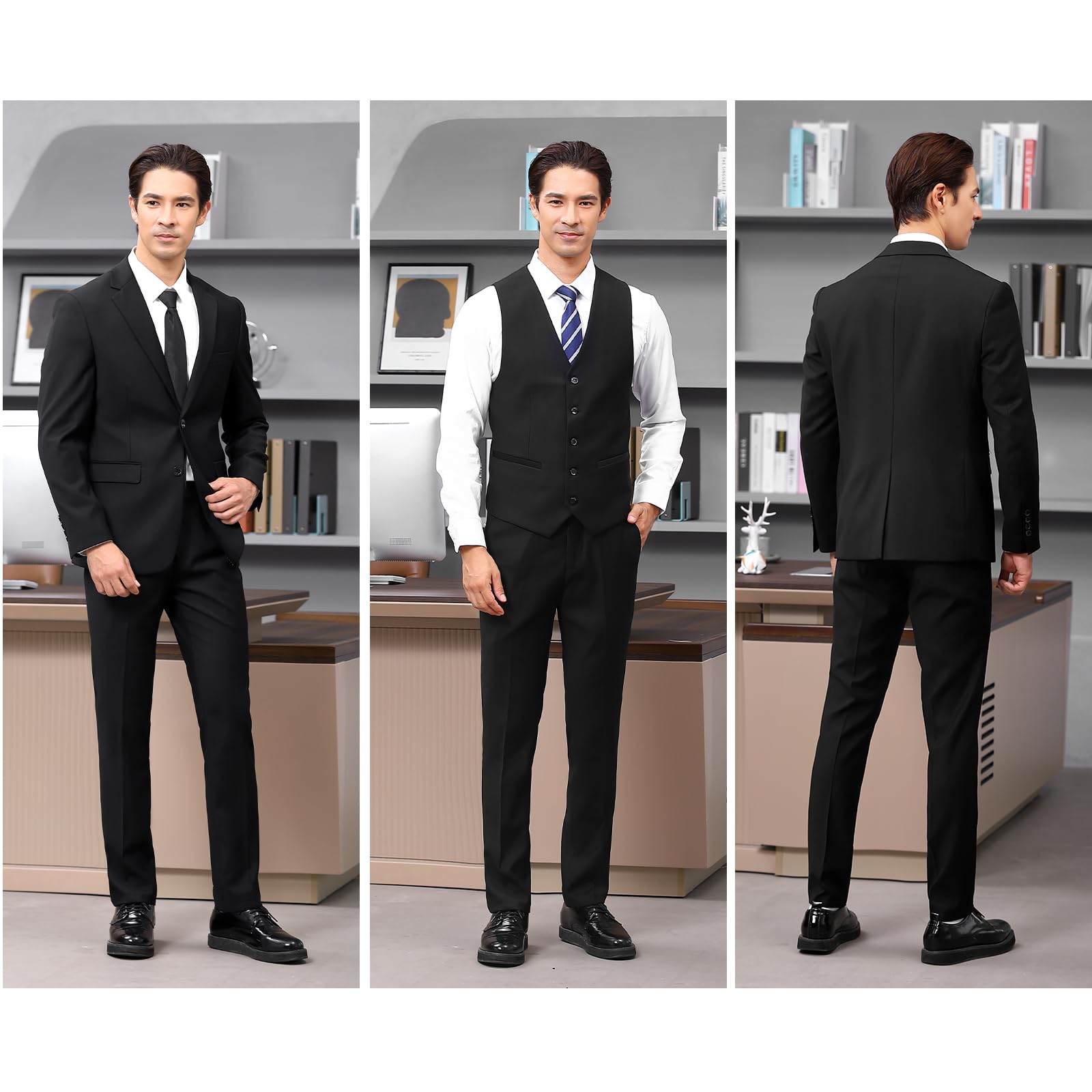 [JIMYXGOL] スーツ 3点セット メンズ 結婚式 スーツ上下セットアップ 礼服 フォーマル メンズ 細身 洗える ストレッチ スリムフィット ビジネス会議・パーティー・冠婚葬祭・おしゃれ・卒業式・就職 春秋冬