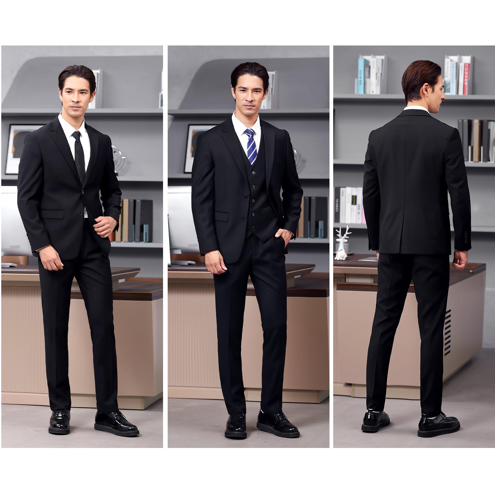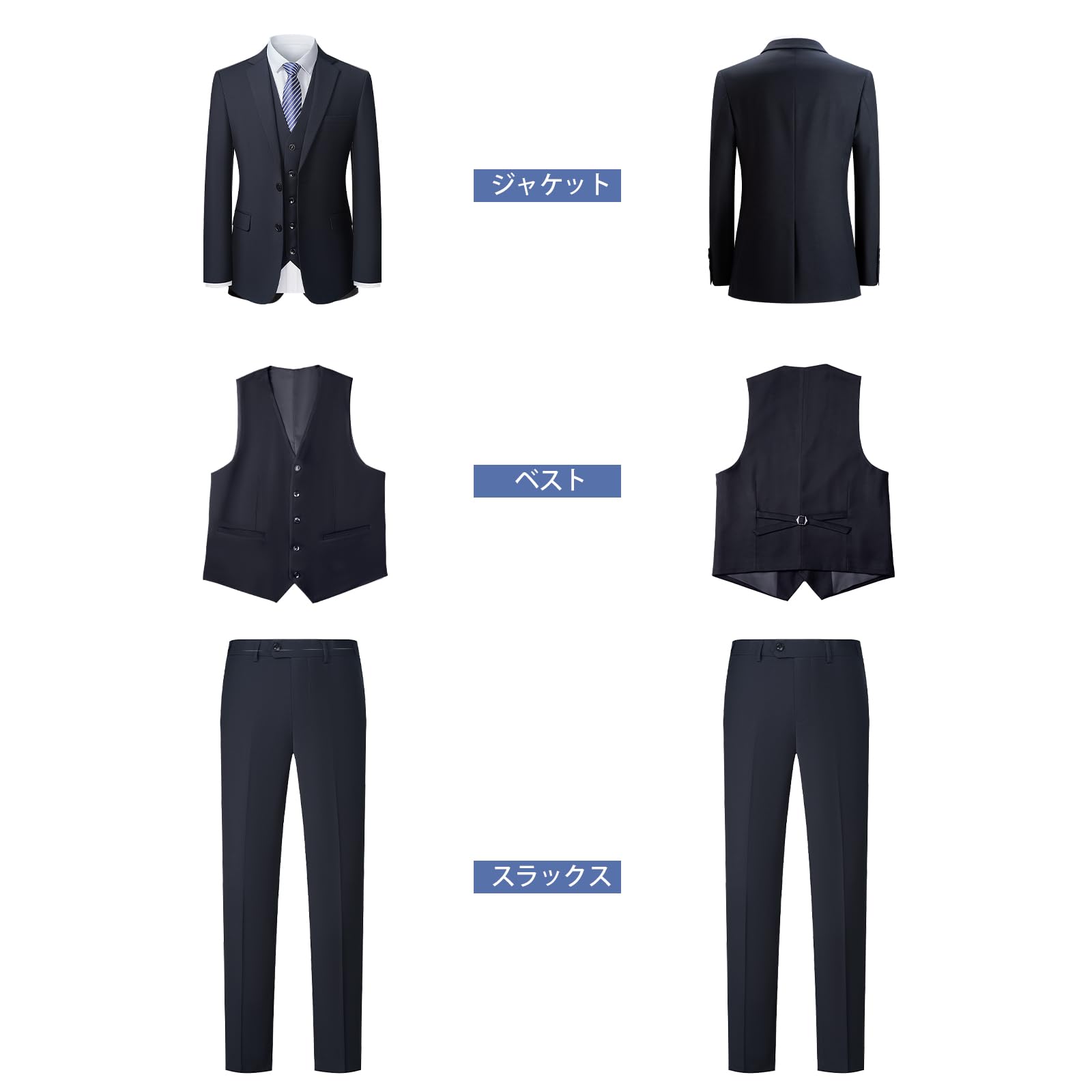 [JIMYXGOL] スーツ 3点セット メンズ 結婚式 スーツ上下セットアップ 礼服 フォーマル メンズ 細身 洗える ストレッチ スリムフィット ビジネス会議・パーティー・冠婚葬祭・おしゃれ・卒業式・就職 春秋冬