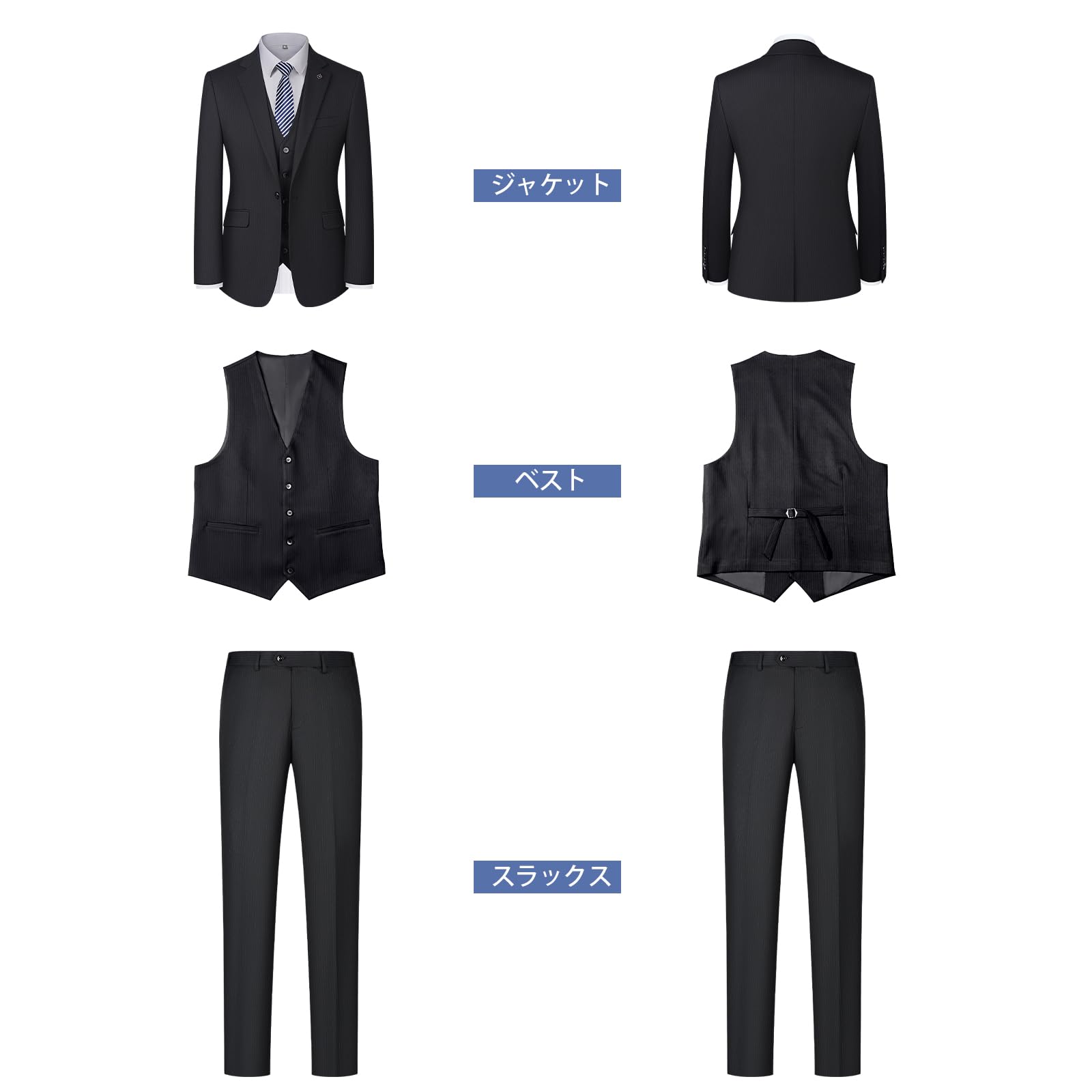 [JIMYXGOL] スーツ 3点セット メンズ 結婚式 スーツ上下セットアップ 礼服 フォーマル メンズ 細身 洗える ストレッチ スリムフィット ビジネス会議・パーティー・冠婚葬祭・おしゃれ・卒業式・就職 春秋冬