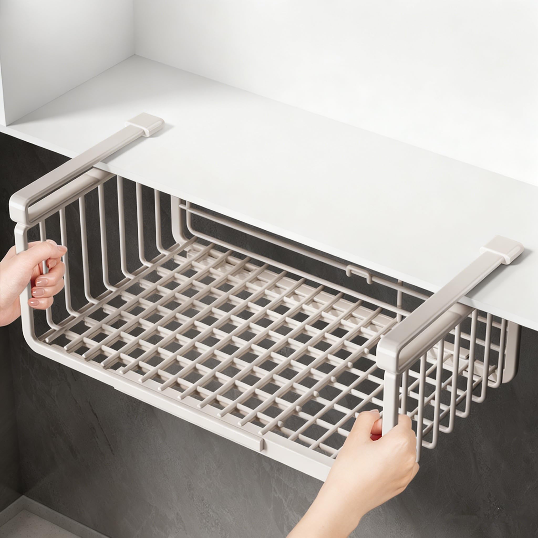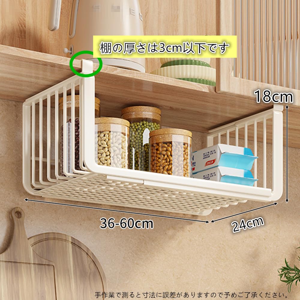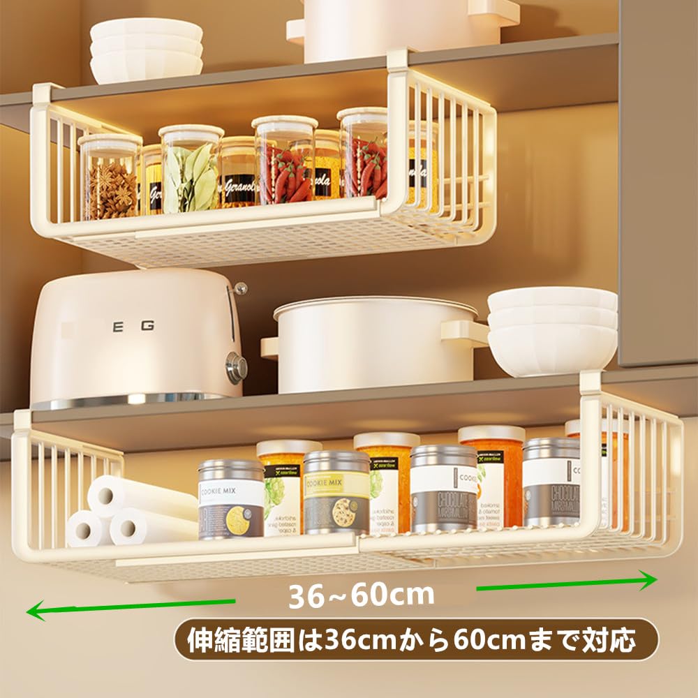 サムコス 吊り下げ収納 差し込み式 収納ラック 36-60CM伸縮 折り畳み式 吊り下げ棚 穴あけ不要 省スペース 掛け式 戸棚下 ラップホルダー 浴室 キッチン 小物 収納 調味料ラック(ホワイト)