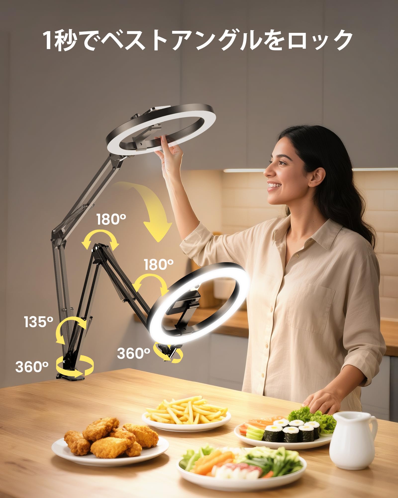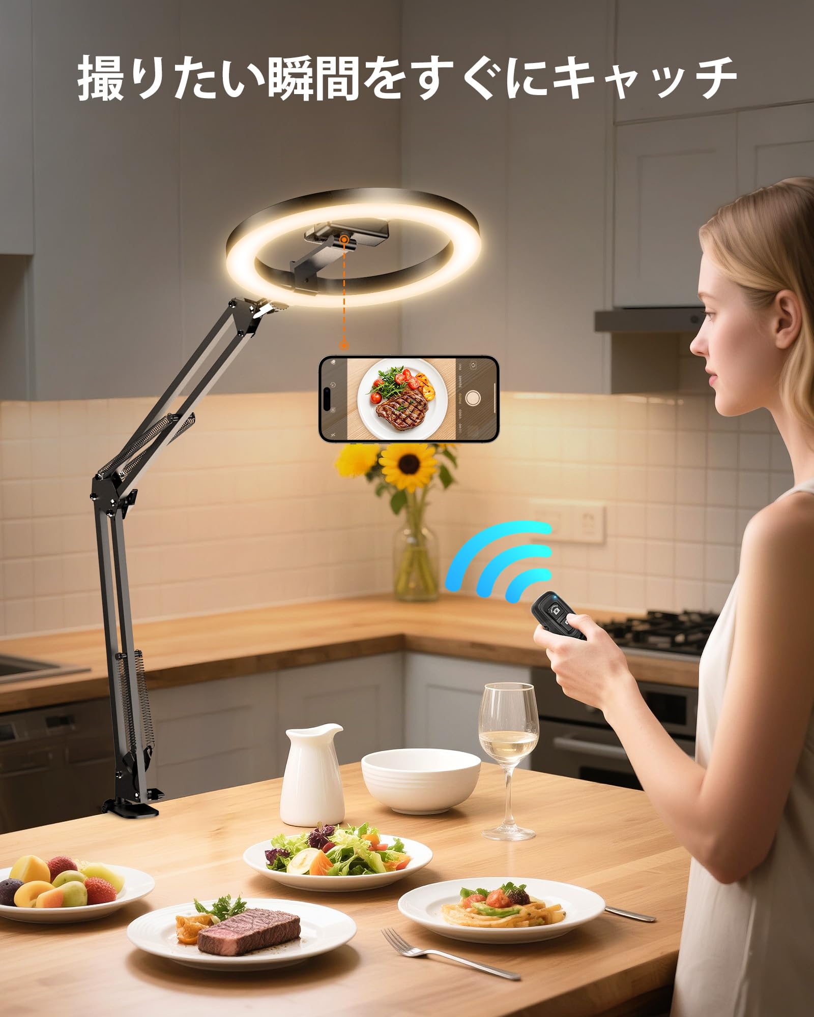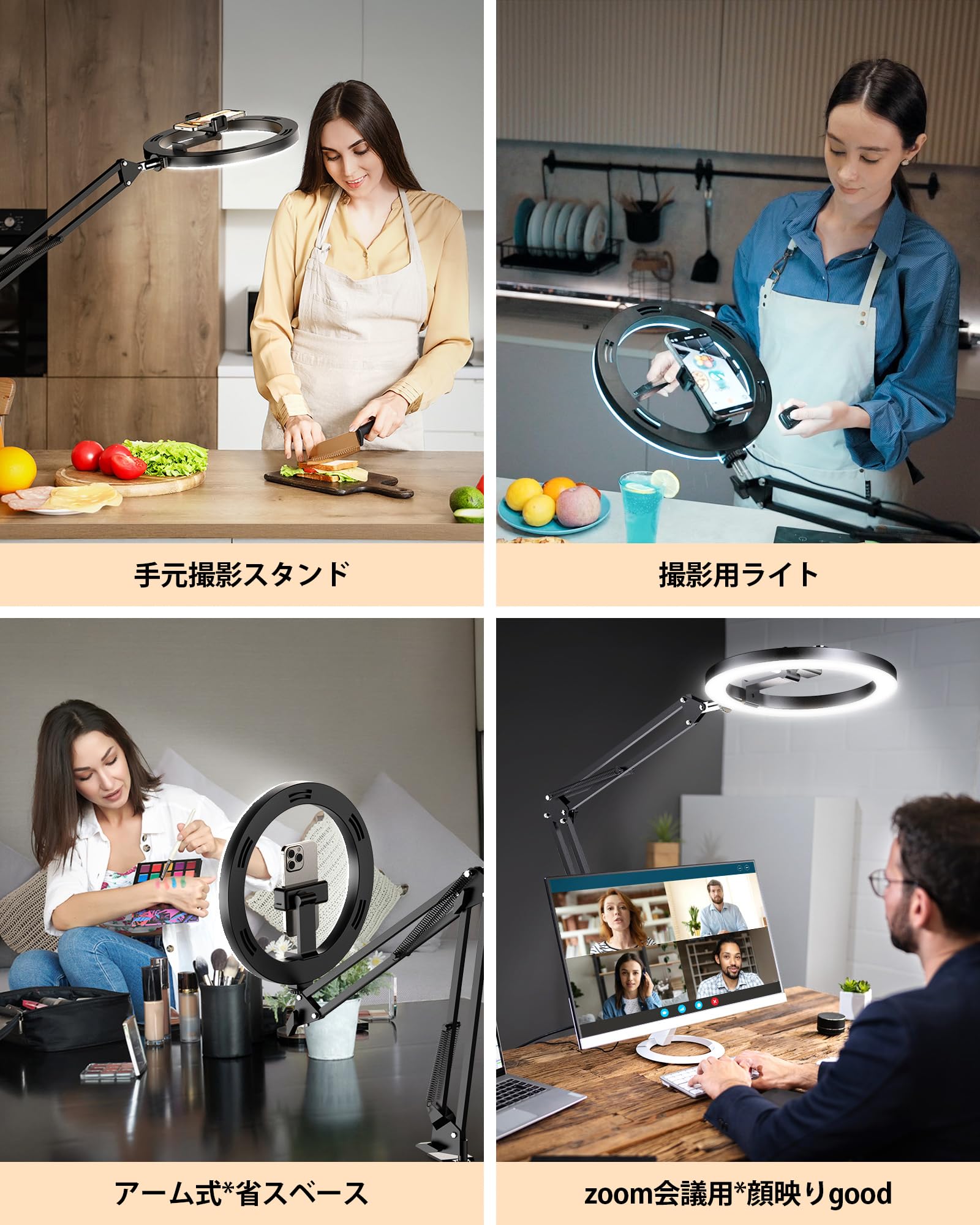 LUXSURE リングライト アーム 撮影用ライト 俯瞰撮影 スマホスタンド ライト付き マグネット 10インチ スマホ撮影スタンド 手元撮影用スマホスタンド 卓上 スマホ 撮影 ライト ring light 撮影 照明 スタンド USB給電 真上から撮影スマホスタンド